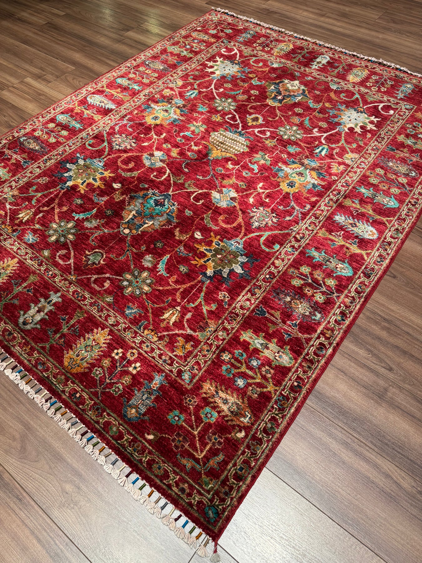 Sultani Binbirgece Original Hand-Woven Red Vegetable Dyed Wool Carpet 157x206 3.23 Square Meters - 5x7 ft