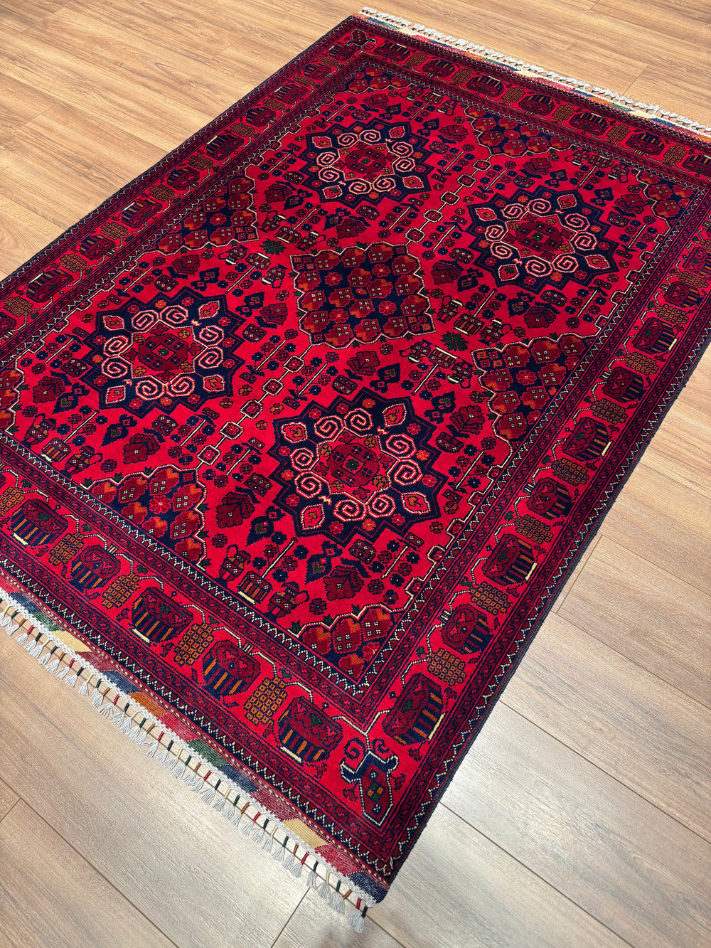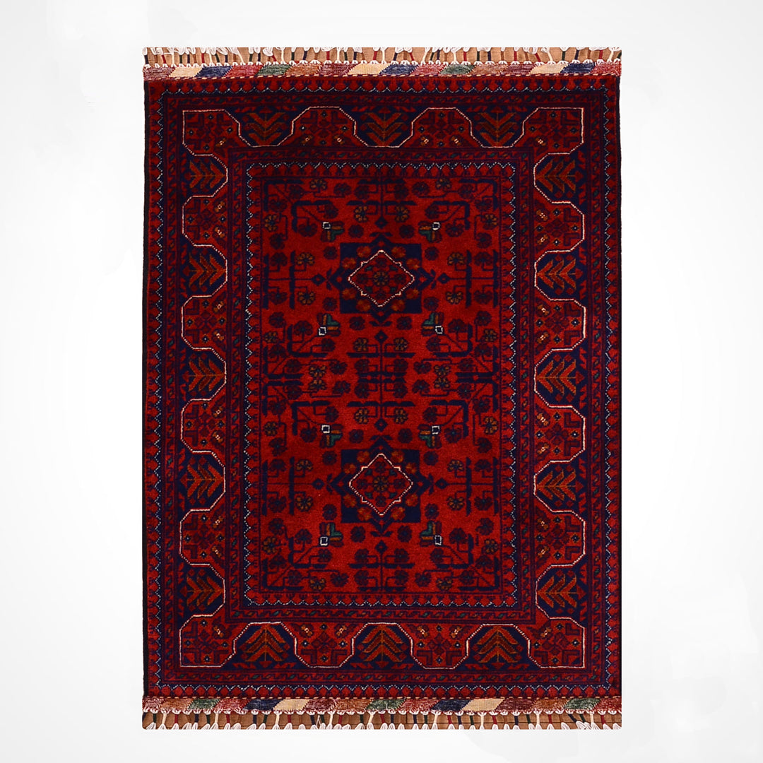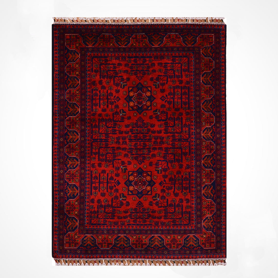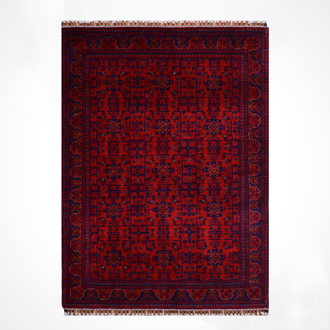 The original Afghan carpet is produced with the hand-woven carpet technique, made of natural wool or silk materials, and the texture of these carpets is soft and warm. The patterns consist of original geometric and symbolic motifs belonging to traditional Afghan culture, and the colors are obtained with natural dyes and do not fade over time. The edge embroidery is meticulously done by hand, and the marks on the back of the carpet are irregular as a natural result of the hand-weaving process. In addition, the color transitions of the original Afghan carpet are natural, deep and vibrant, without artificial brightness or hard textures.