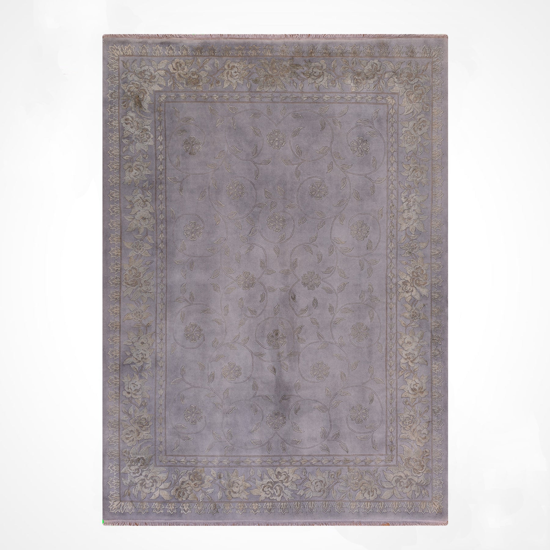 Aubusson Original Hand Woven Gray Wool Bamboo Carpet 173x239 4.13 Square Meters - 5x8 ft