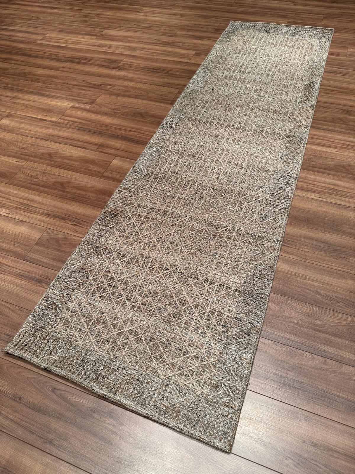 İskandinav Orijinal El Dokuması Koyu Bej Yün Halı