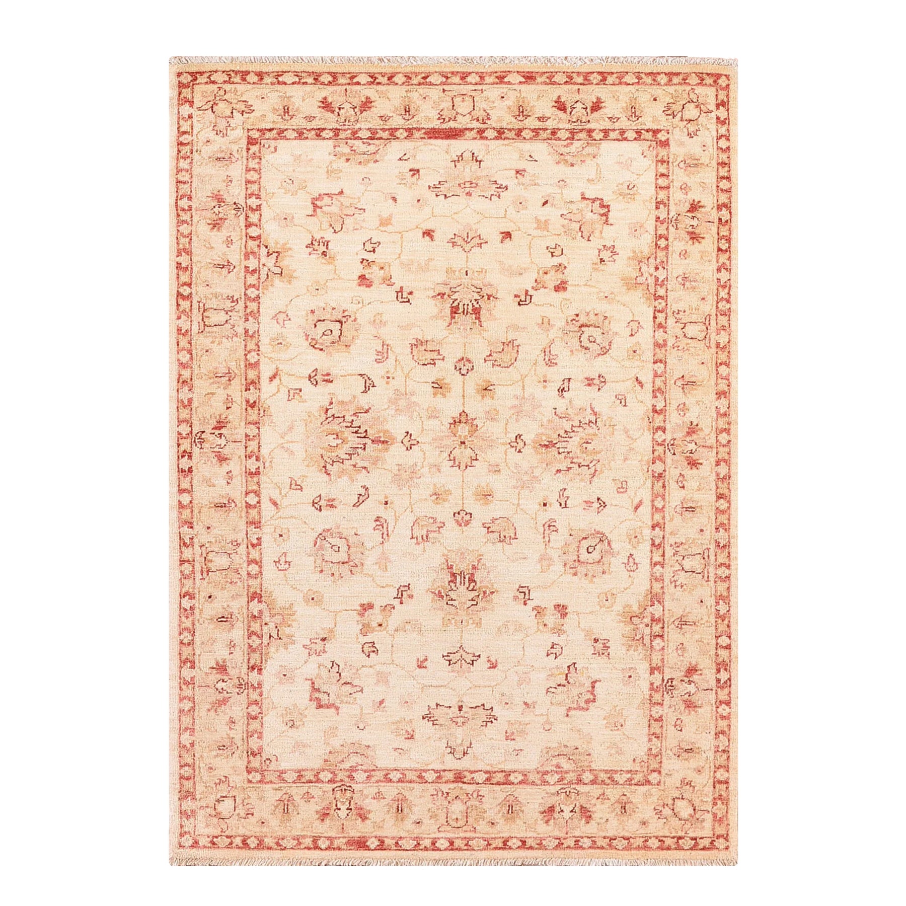 Uşak Original Hand Woven Beige Red Vegetable Dyed Wool Carpet 103x157 1.62 Square Meters - 3x5 ft