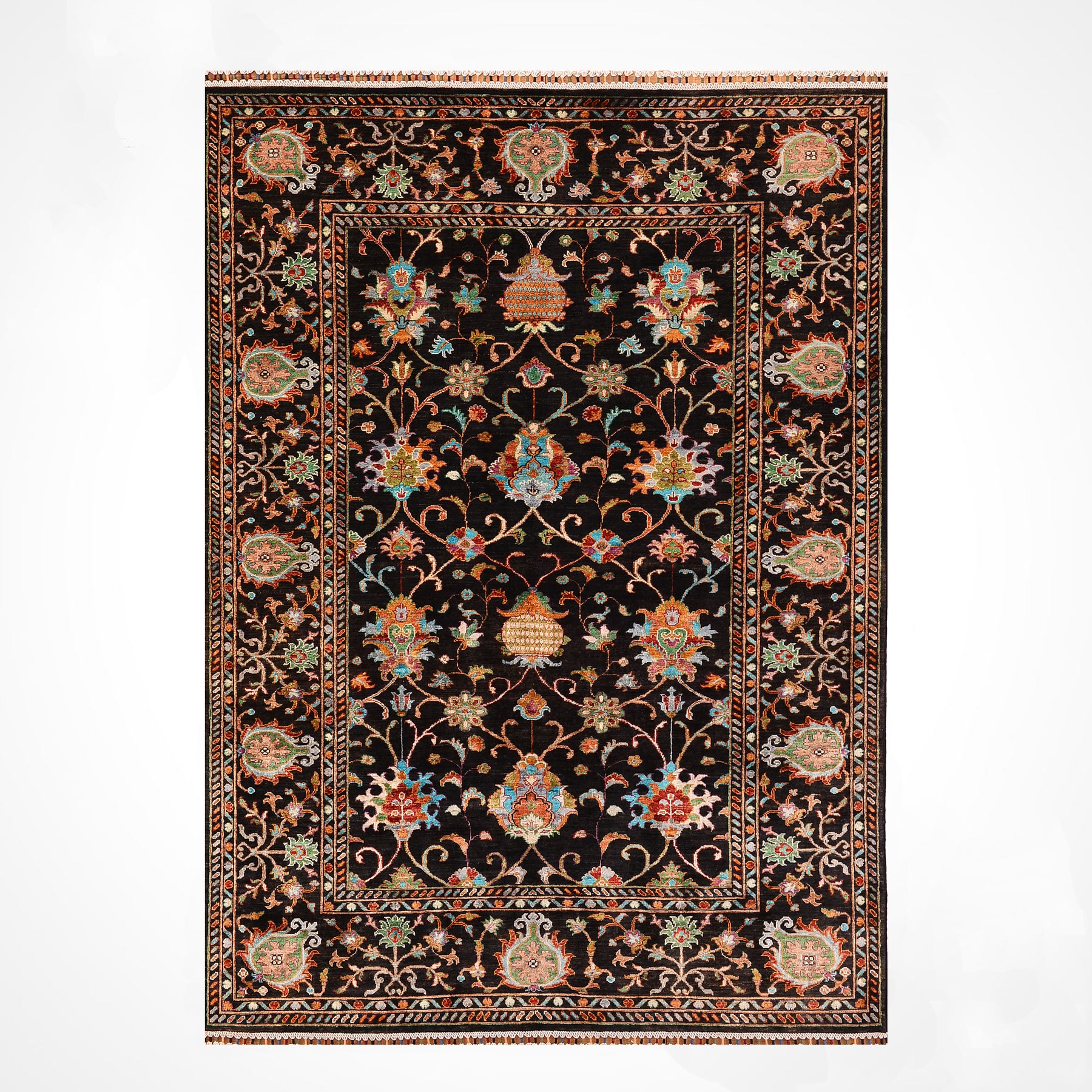 Sultani Binbirgece Original Hand Woven Black Vegetable Dyed Wool Carpet 172x236 4.06 Square Meters - 5x7 ft