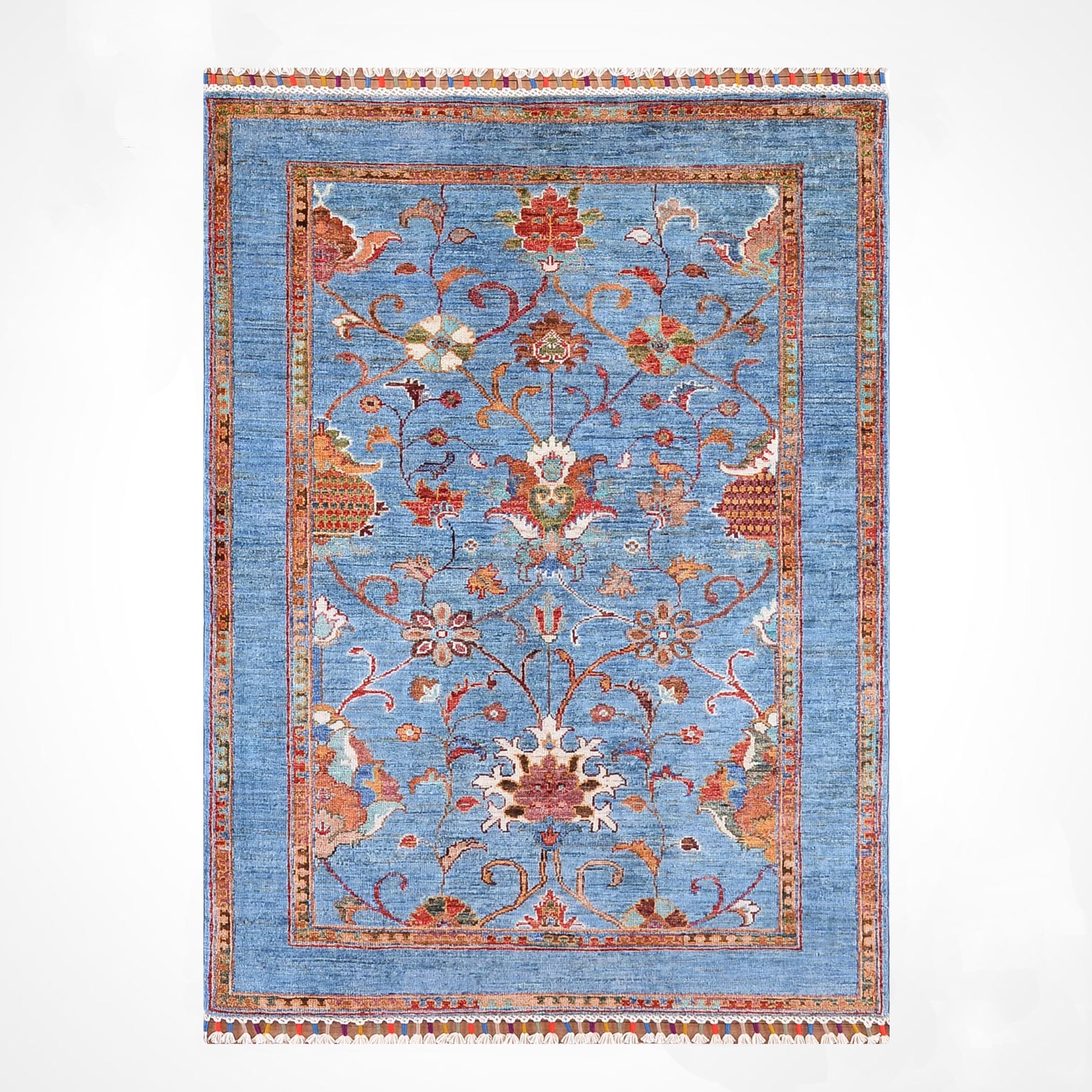 Sultani Floral Original Hand Woven Blue Vegetable Dyed Wool Carpet 102x151 1.54 Square Meters - 3x5 ft