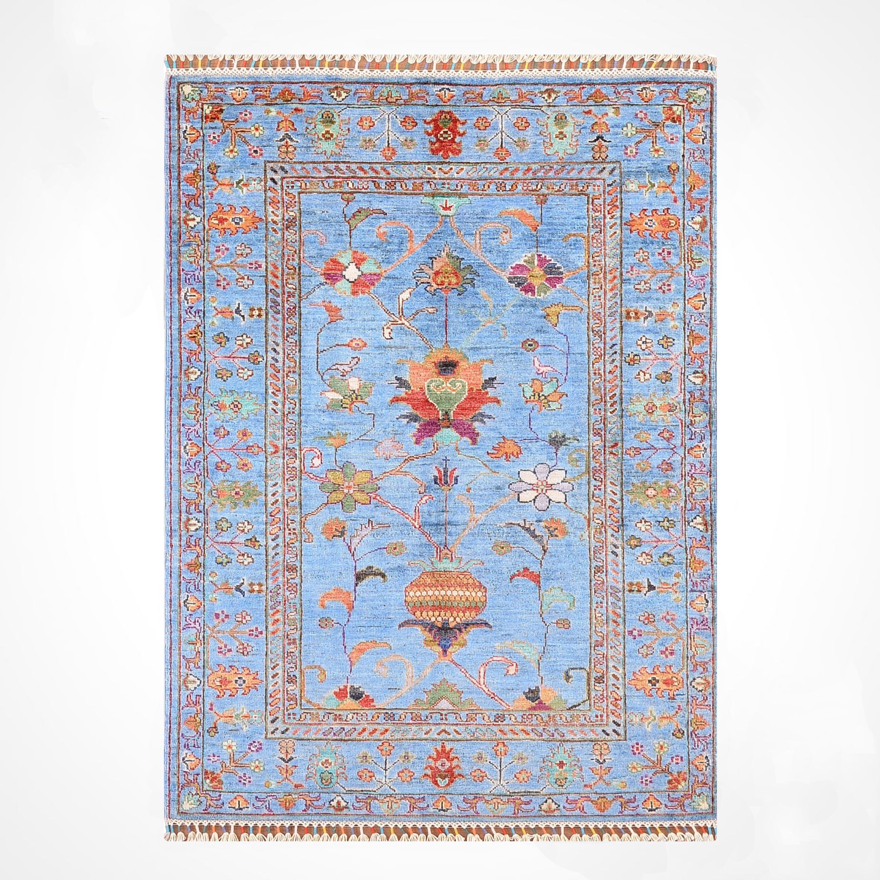 Sultani Floral Original Hand Woven Blue Vegetable Dyed Wool Carpet 104x153 1.59 Square Meters - 3x5 ft