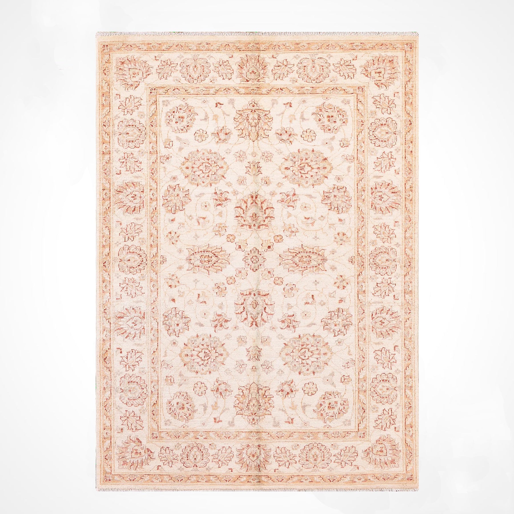 Oushak Rug Original Hand Woven Cream Vegetable Dyed Wool Carpet 123x186 2.29 Square Meters - 4x6 ft