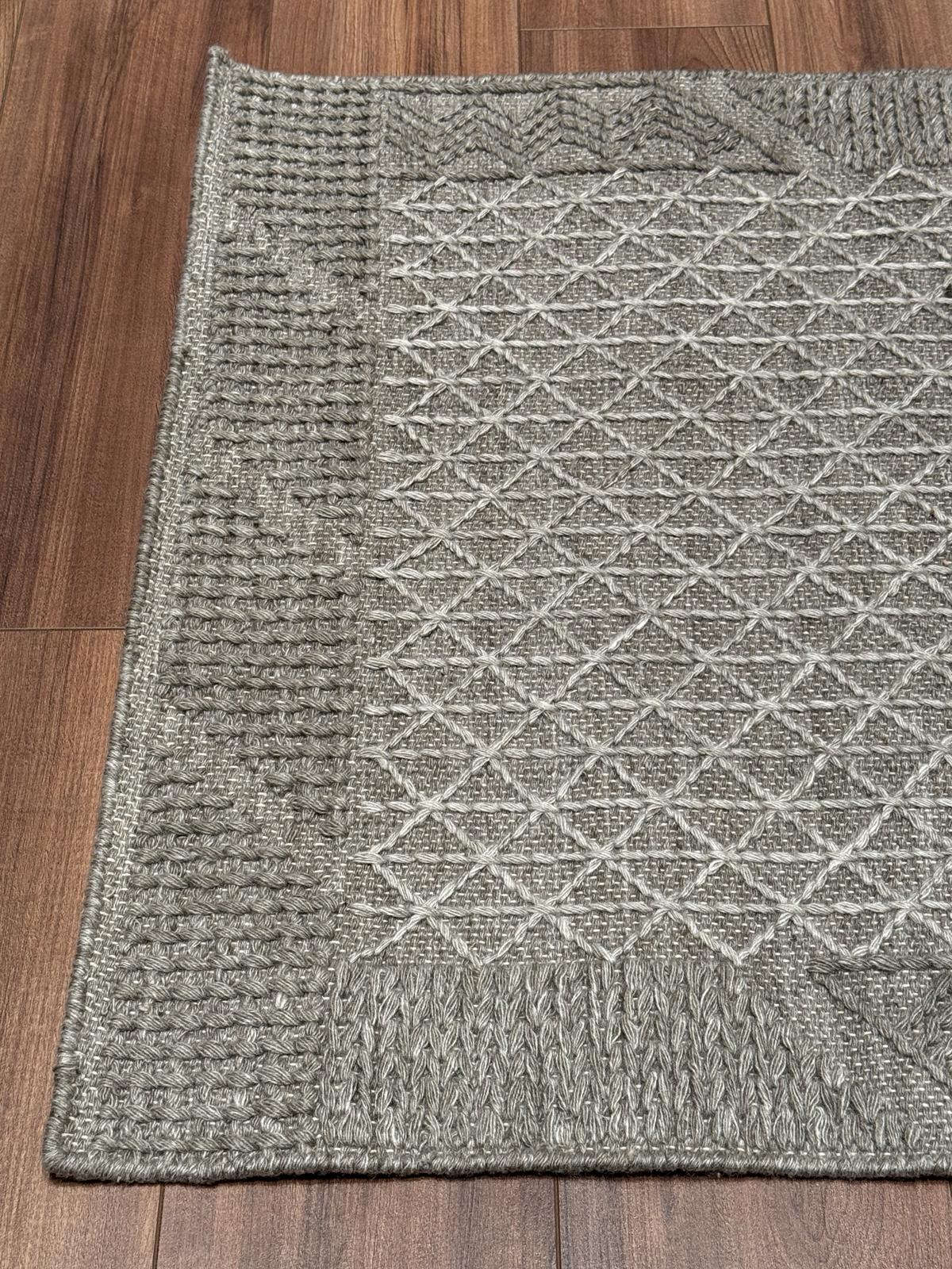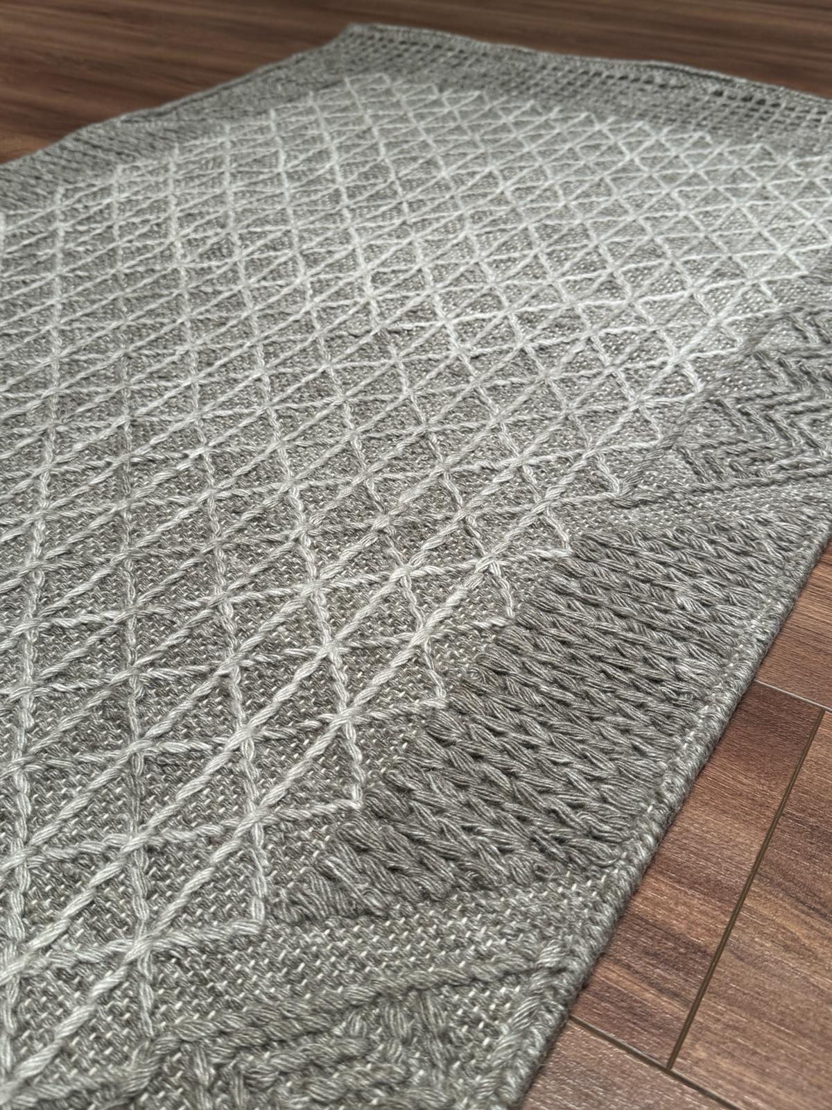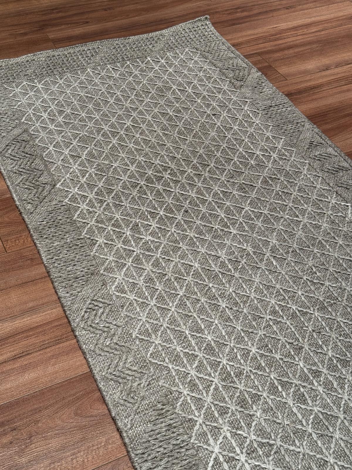 Bu halımızın kilim dokuma olup pamuk ve yün ipliklerden üretilmiştir.