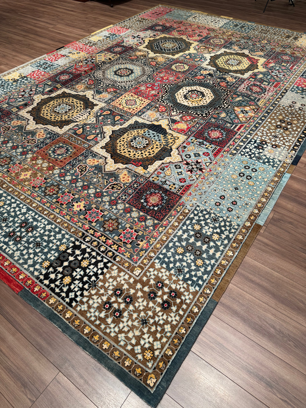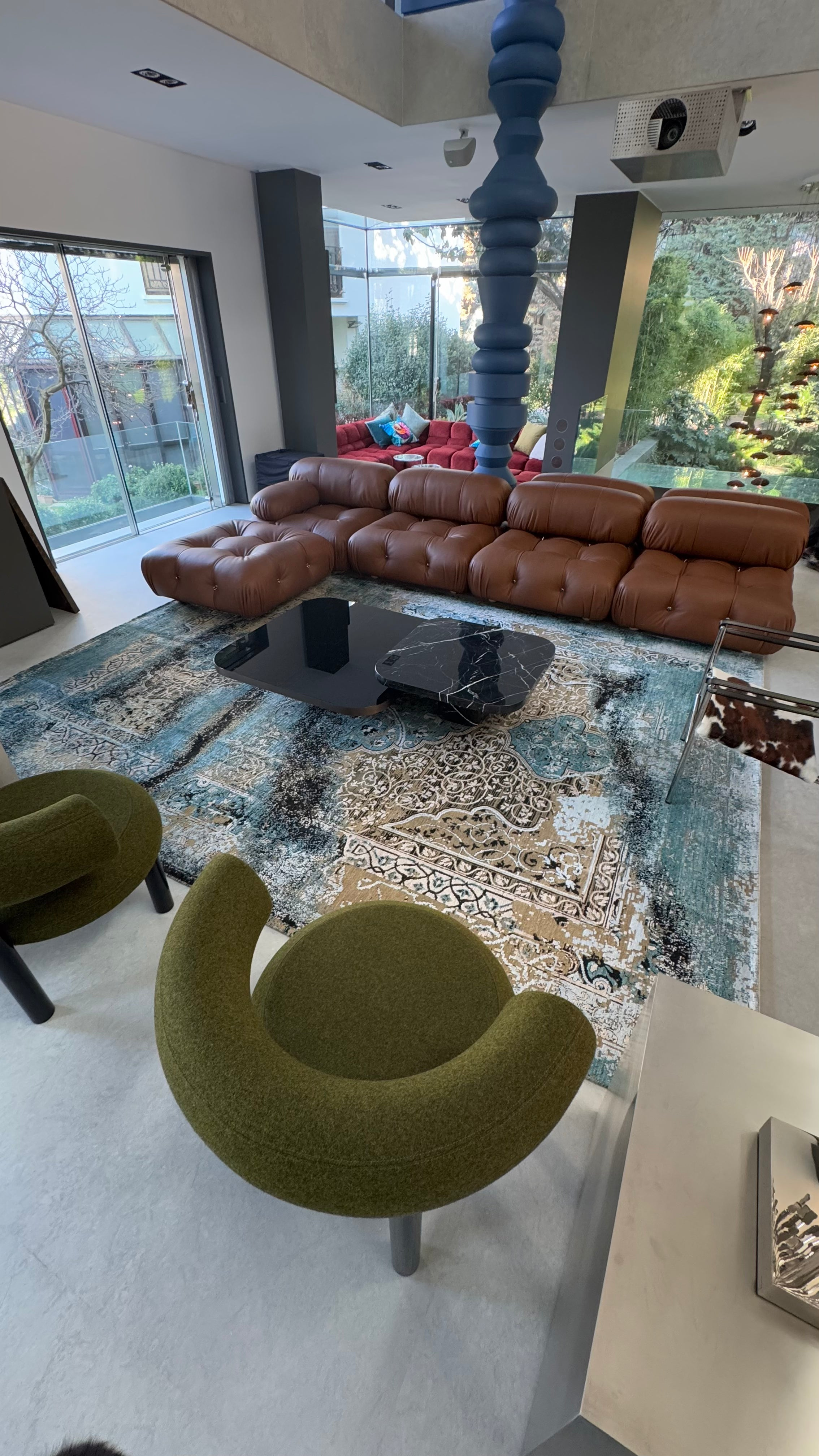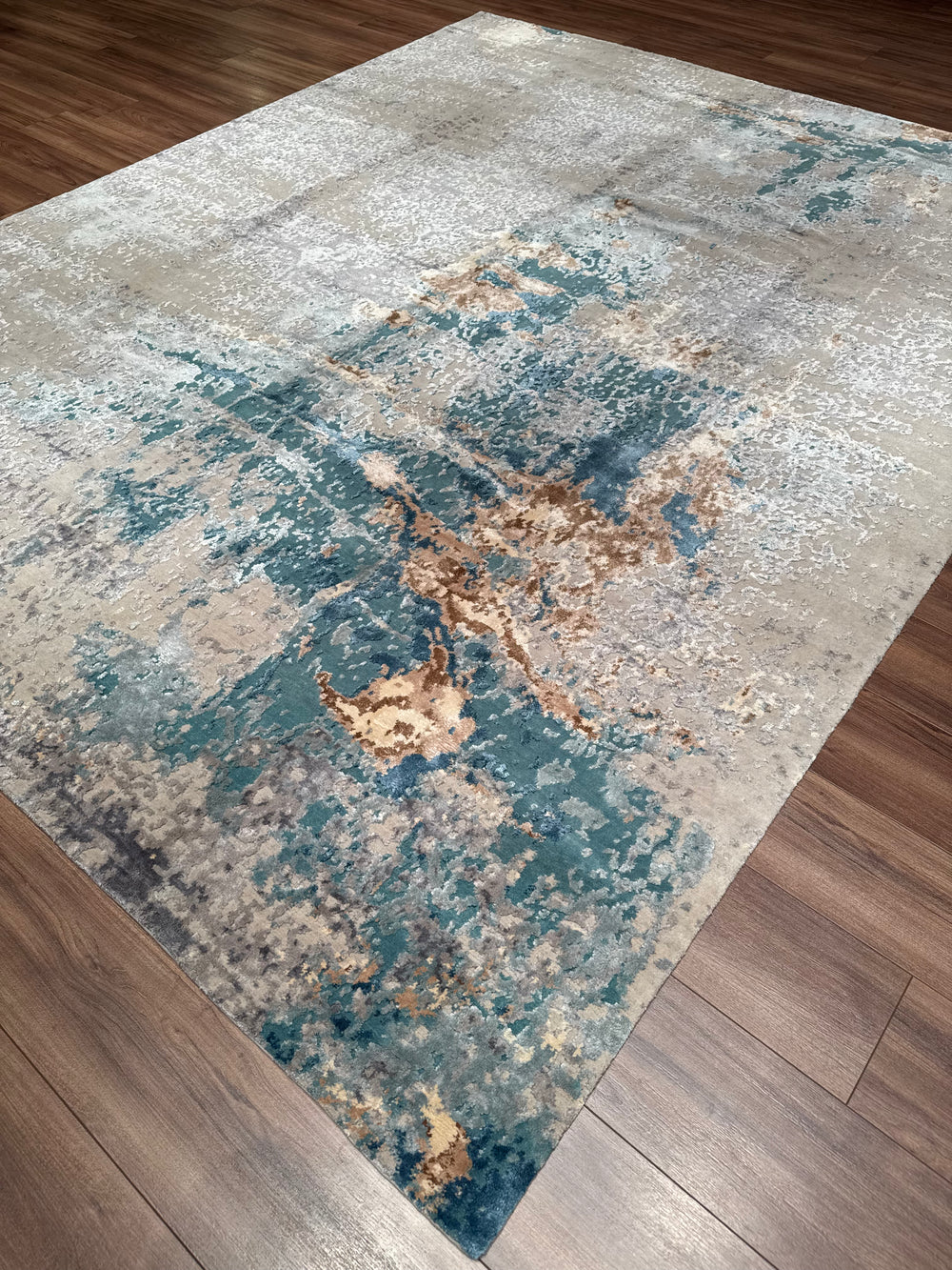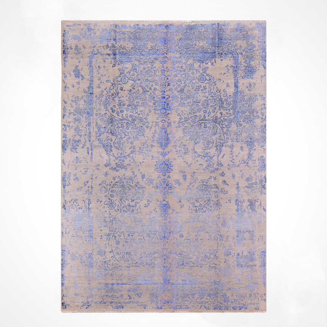 This elegant runner/rug blends luxurious design with natural fiber. It’s hand-knotted from bamboo-silk (viscose) yarns on a wool base, creating a soft pile with a shimmering turquoise-gray damask pattern. The artisan weaving yields a unique texture and subtle sheen. Bamboo’s natural oils make this rug more fire-resistant, and its tight weave means it can be easily maintained by gentle vacuuming or shaking. Ideal for living rooms or bedrooms, it brings organic warmth and sophisticated style to any high-end interior. This sustainable bamboo-silk rug adds a calm, luxurious atmosphere underfoot.