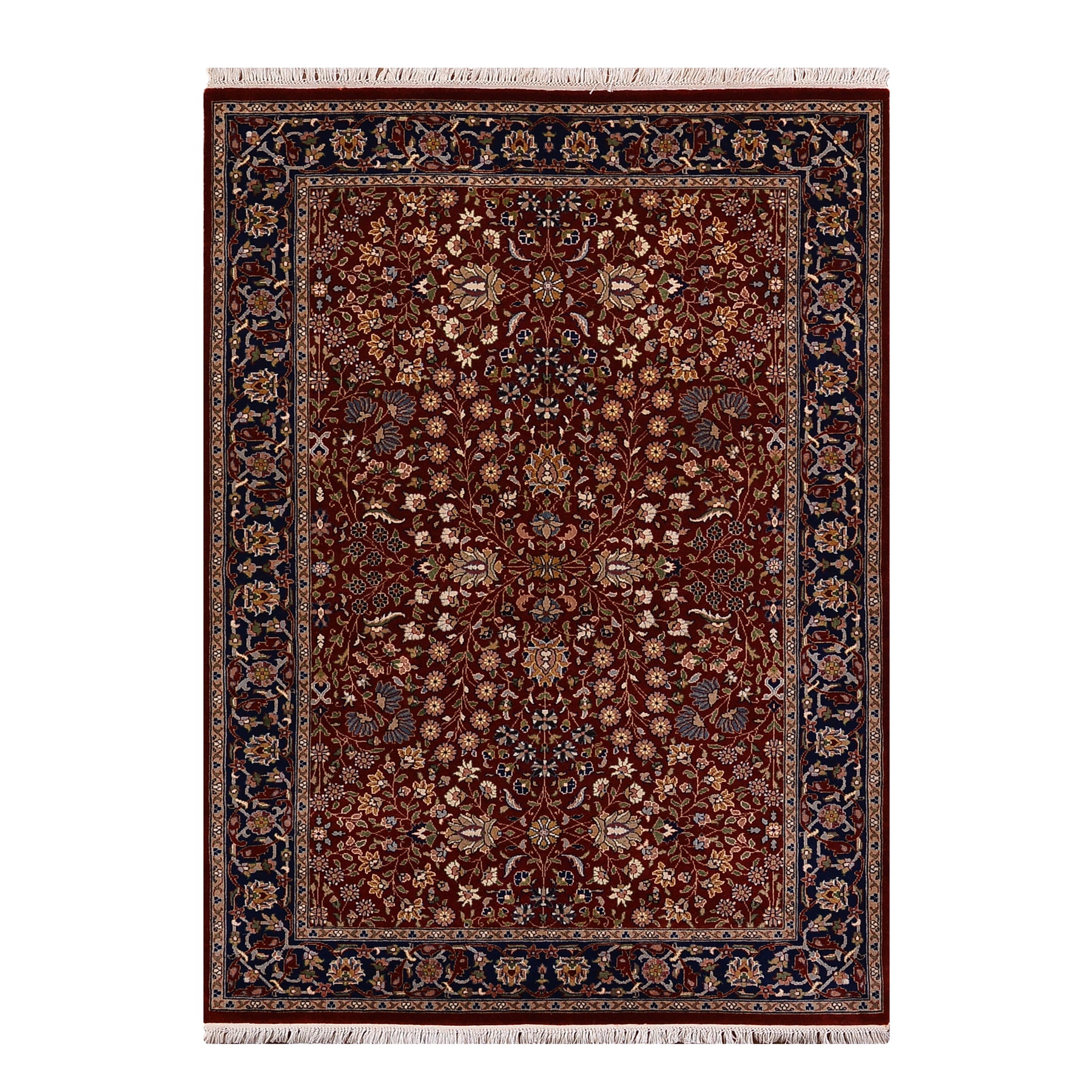 Hereke Seven Mountains Flower Original Handwoven Red and Navy Wool Rug 124x185 cm (2.29 square meters) - 4x6 ft