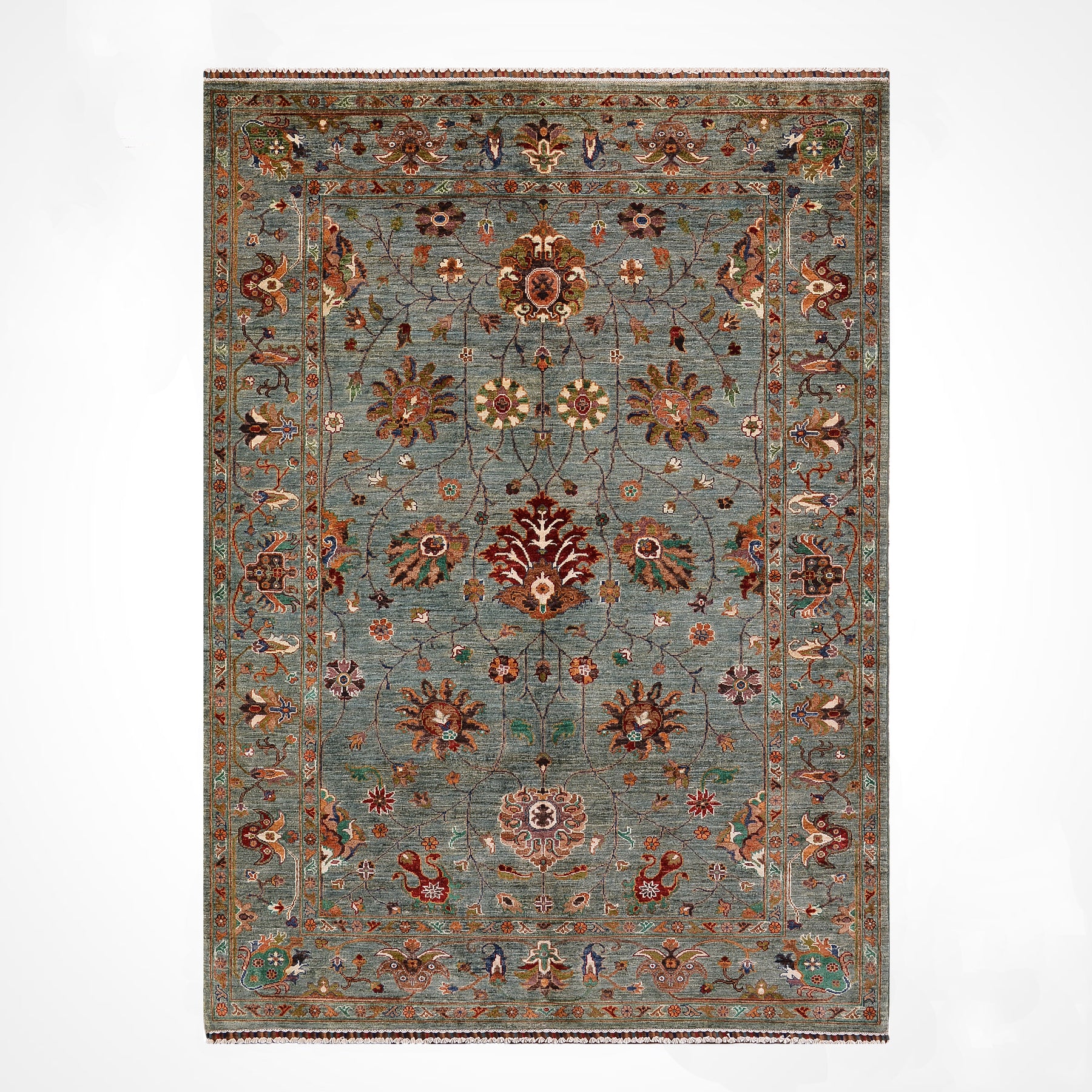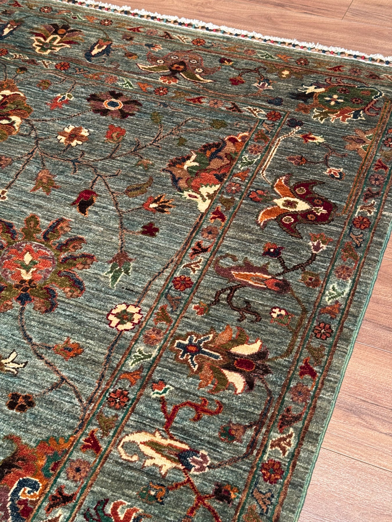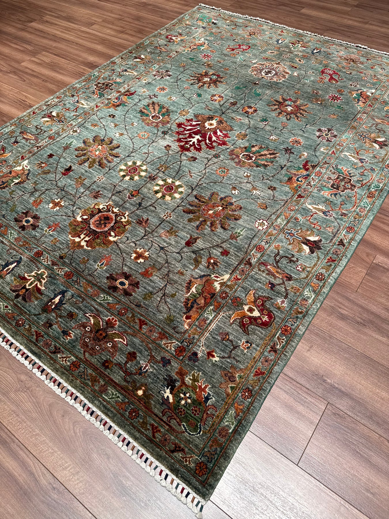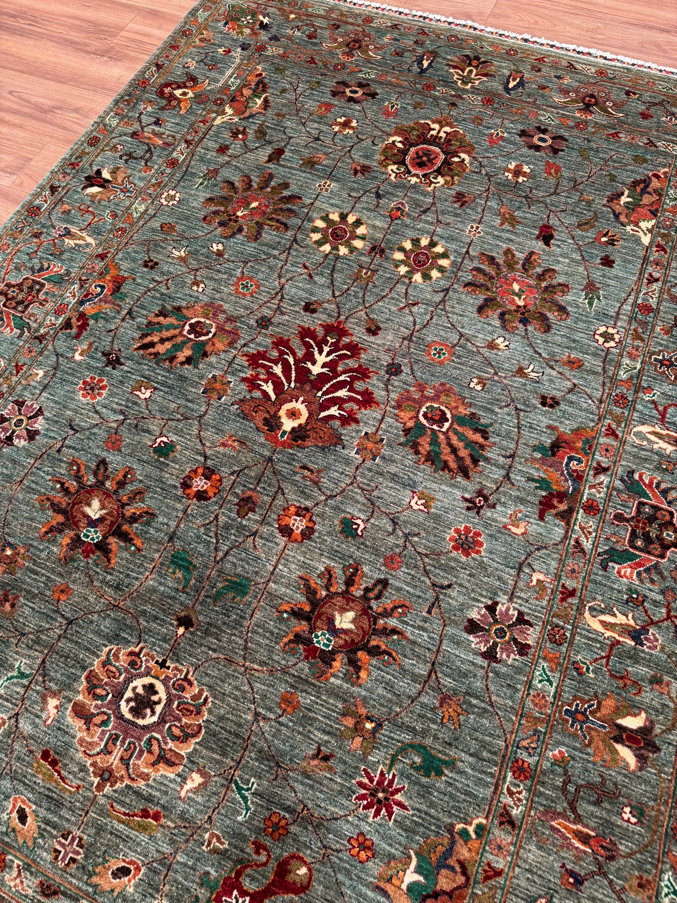 Sultani Binbirgece Original Hand-Woven Green Vegetable Dyed Wool Carpet 173x240 4.15 Square Meters - 5x8
