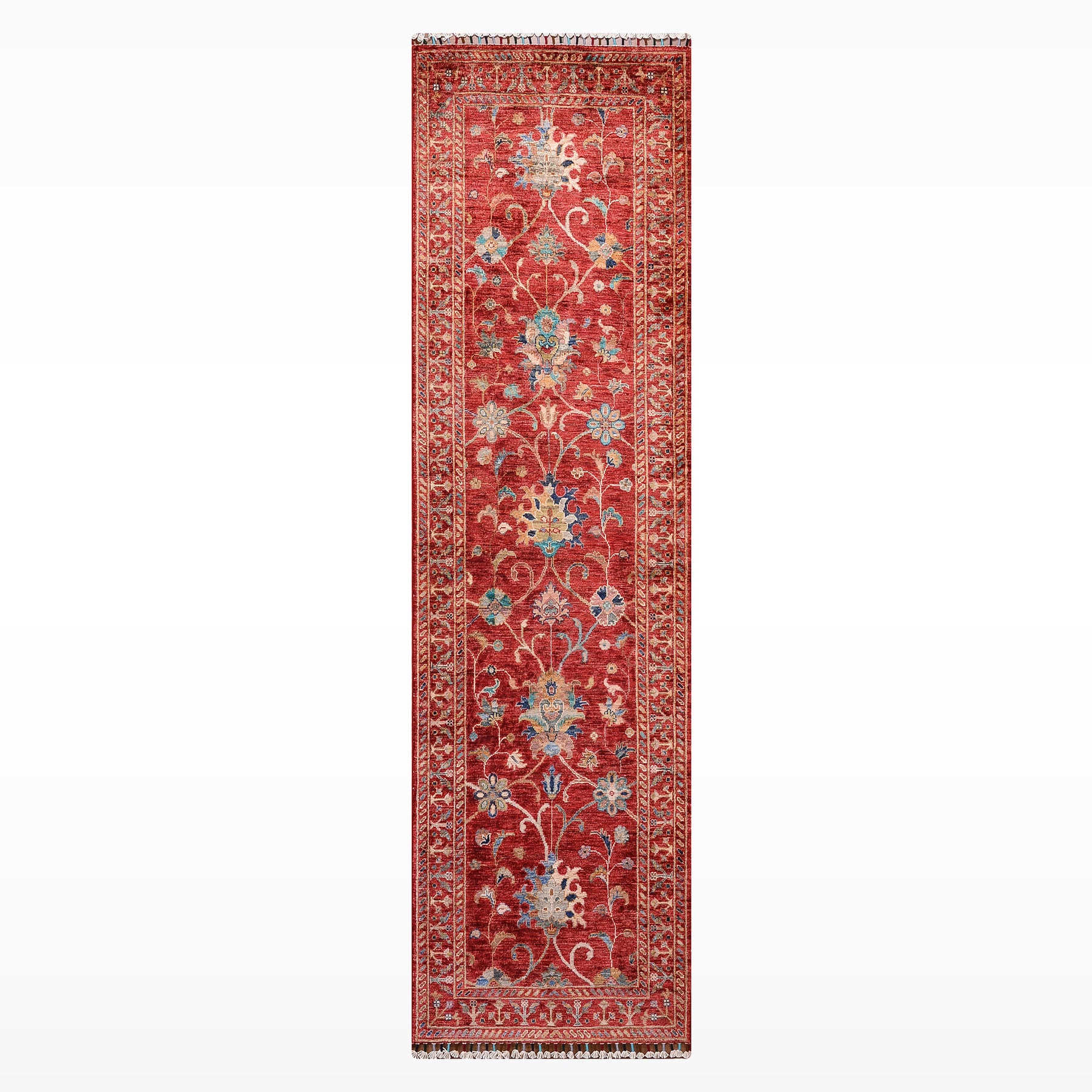 Sultani Binbirgece Runner Original Hand-Woven Red Vegetable Dyed Wool Carpet 0.83x244 2.03 Square Meters - 3x8 ft