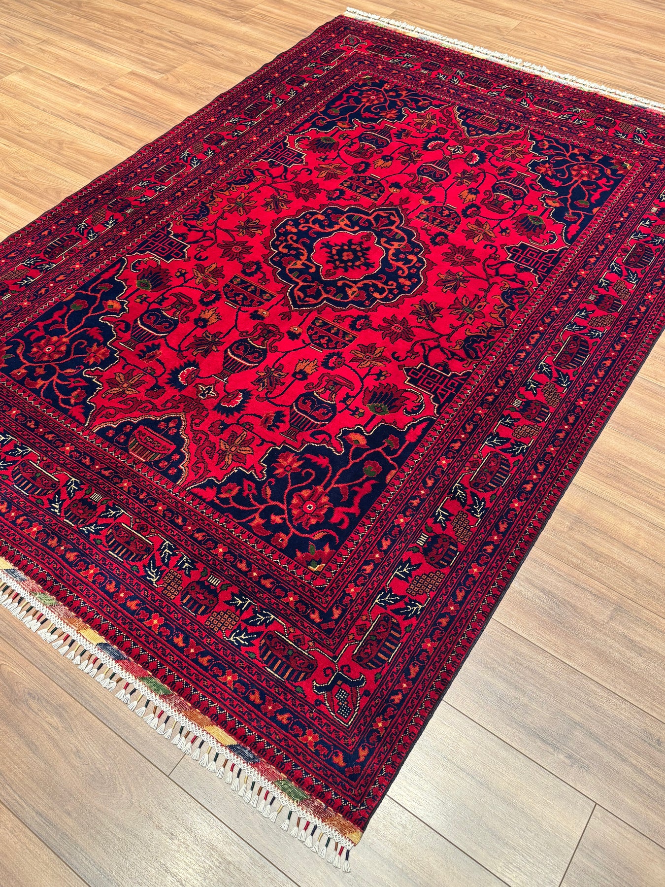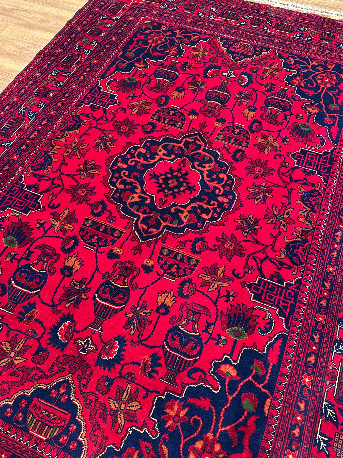 Carpet cleaning varies depending on the carpet's material and the type of dirt. Because this carpet is made from wool yarns dyed with natural dyes, chemical-containing carpet shampoos or detergents should not be used. If any liquid is spilled on this carpet, the affected area should first be thoroughly rinsed with a paper towel, then lathered with white soap and wiped with a cloth. It's also important to remember that immediate action is crucial when spills occur. If the spilled liquid remains on the carpet for an extended period without being wiped, the stain will set into the warp and become much more difficult to remove. Finally, we recommend that you have this carpet cleaned by a professional carpet cleaner you trust who specializes in hand-woven carpet cleaning. If you live in Istanbul, please contact us for carpet cleaning.