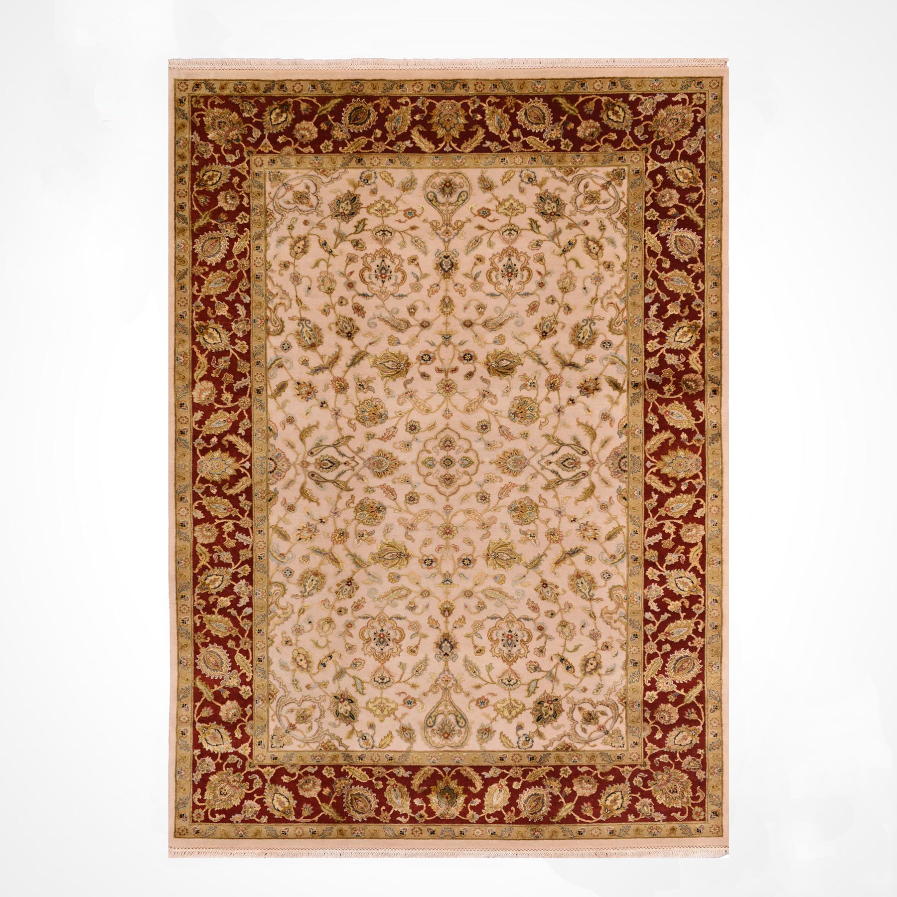 Indian Owl Original Hand-Woven Cream Red Wool Silk Carpet 180x284 5.11 Square Meters - 6x9 ft