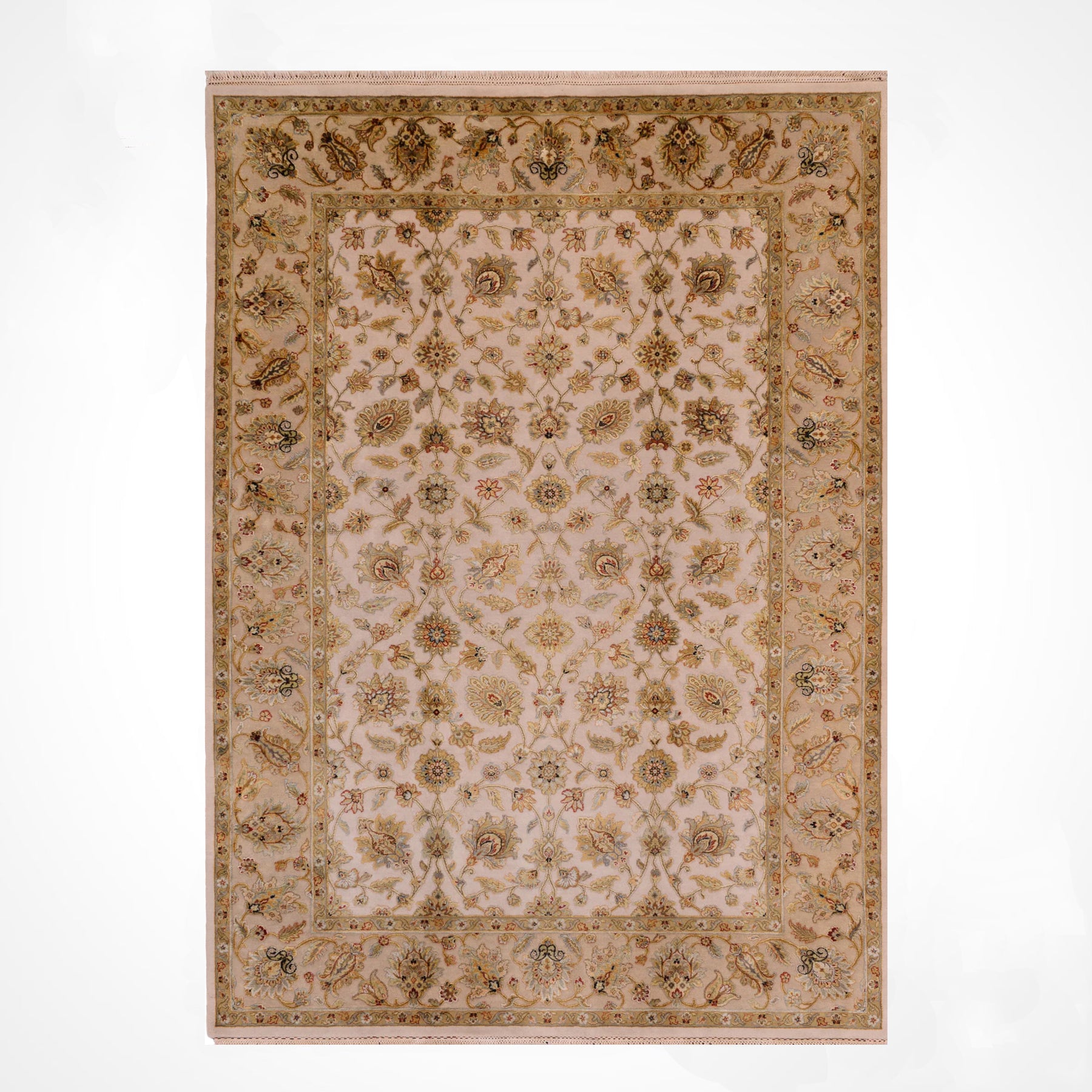 Indian Owl Original Hand Woven Beige Cream Wool Silk Carpet 182x275 5.01 Square Meters - 6x9 ft