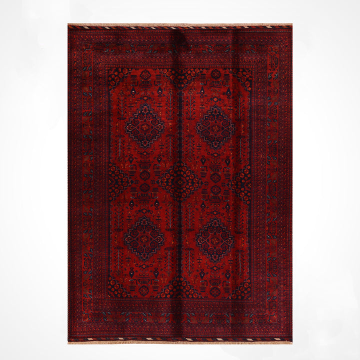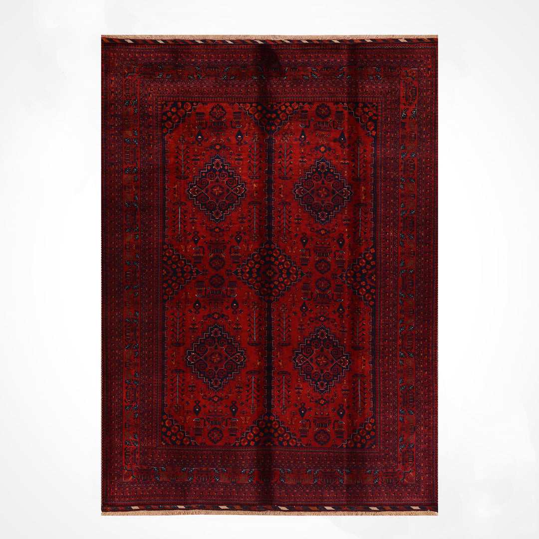 The weft and warp of this carpet are cotton knots made of wool yarn. The yarns are also completely hand-made using kirman. The wool yarns used in the knots are dyed using natural materials, namely madder. For example, to obtain the red color, wool yarns are boiled with rose petals and the yarn takes the color of the rose petal; yarns dyed in this way are called madder-dyed yarns. Carpets produced from yarns dyed with madder dye have a brighter appearance with use. On the other hand, this carpet is a high-quality carpet in terms of weaving density and is woven with the Turkish knot, in other words, the double knot technique; thanks to this feature, it is more durable and has a longer life compared to Iranian carpets. Finally, approximately 1,950,000 hand knots were tied in the weaving of this carpet.