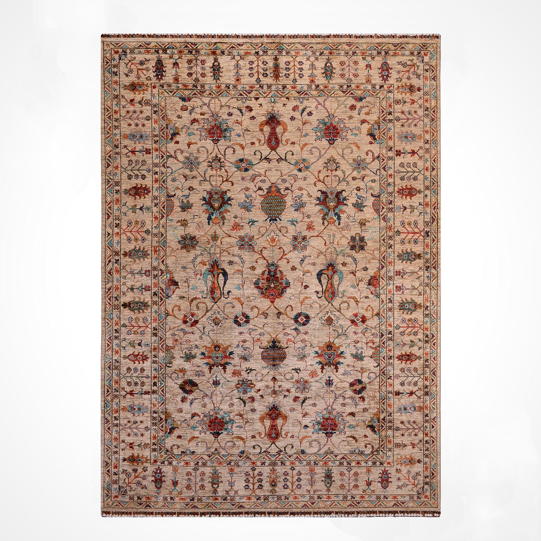 Sultani Binbirgece Original Hand-Woven Beige Vegetable Dyed Wool Carpet 204x292 5.96 Square Meters - 7x10 ft