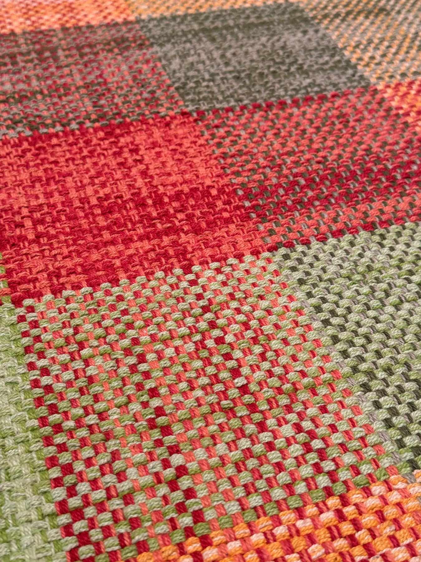 El dokuması pamuk kilim, %100 doğal pamuk ipliklerle geleneksel tezgahlarda üretilmiştir. Yumuşak dokusu, ince yapısı ve doğal görünümü sayesinde hem estetik hem de fonksiyonel bir kullanım sunar. Nefes alabilen pamuk yapısı sayesinde dört mevsim boyunca rahatlıkla kullanılabilir. Çift taraflı yapısı sayesinde kullanım ömrü uzundur ve dekorasyonda farklı kombinler için esneklik sağlar. Hafifliği sayesinde evin farklı alanlarında kolaylıkla taşınabilir; salon, yatak odası, mutfak, antre ya da balkon gibi pek çok alanda şıklıkla kullanılabilir.