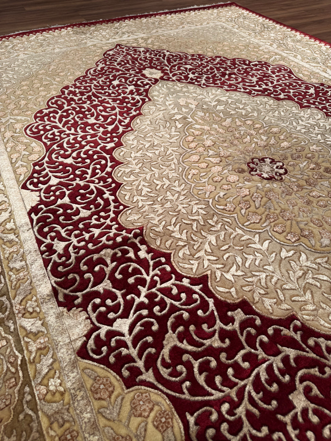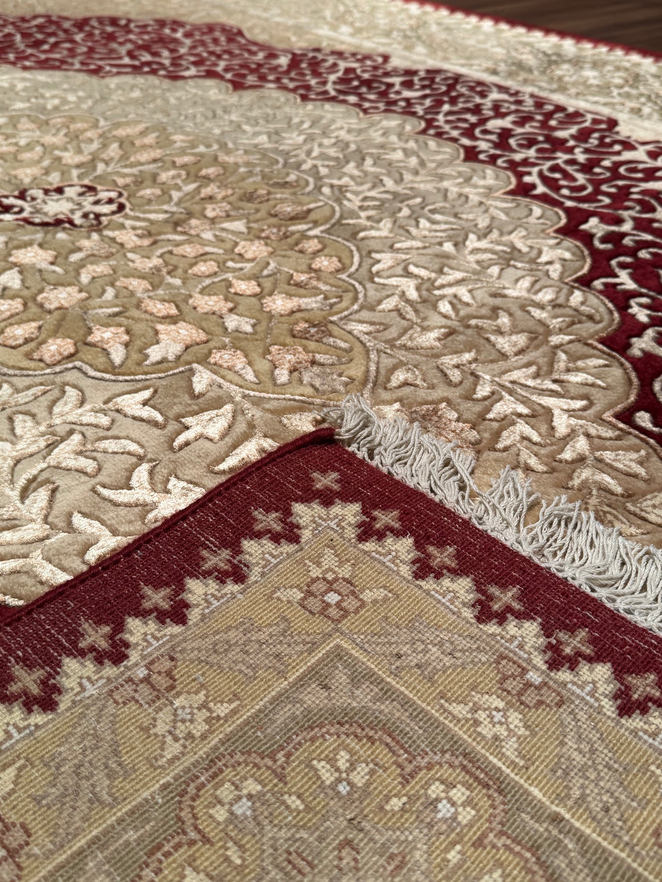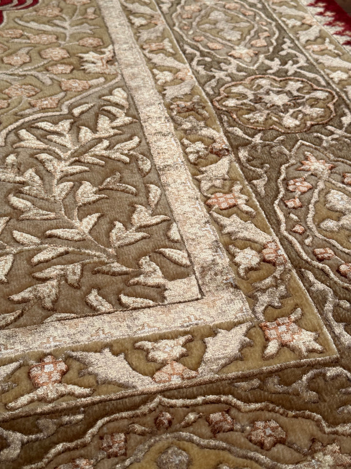 Hint Uşağı Orijinal El Dokuması Bej Kırmızı Yün Bambu Halı 206x304 6.26 Metrekare - 8x10 ft
