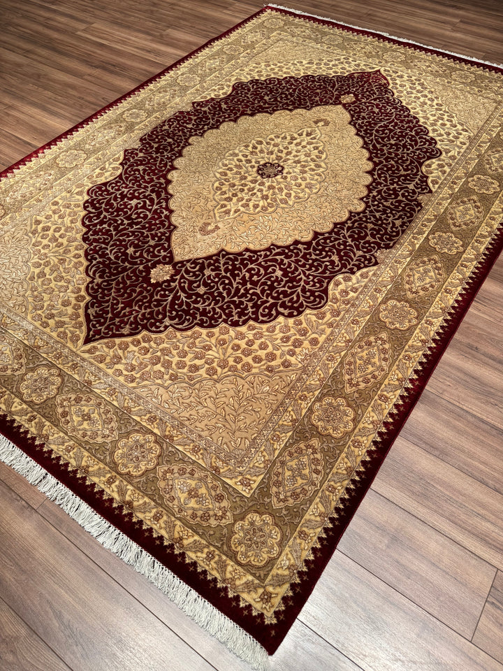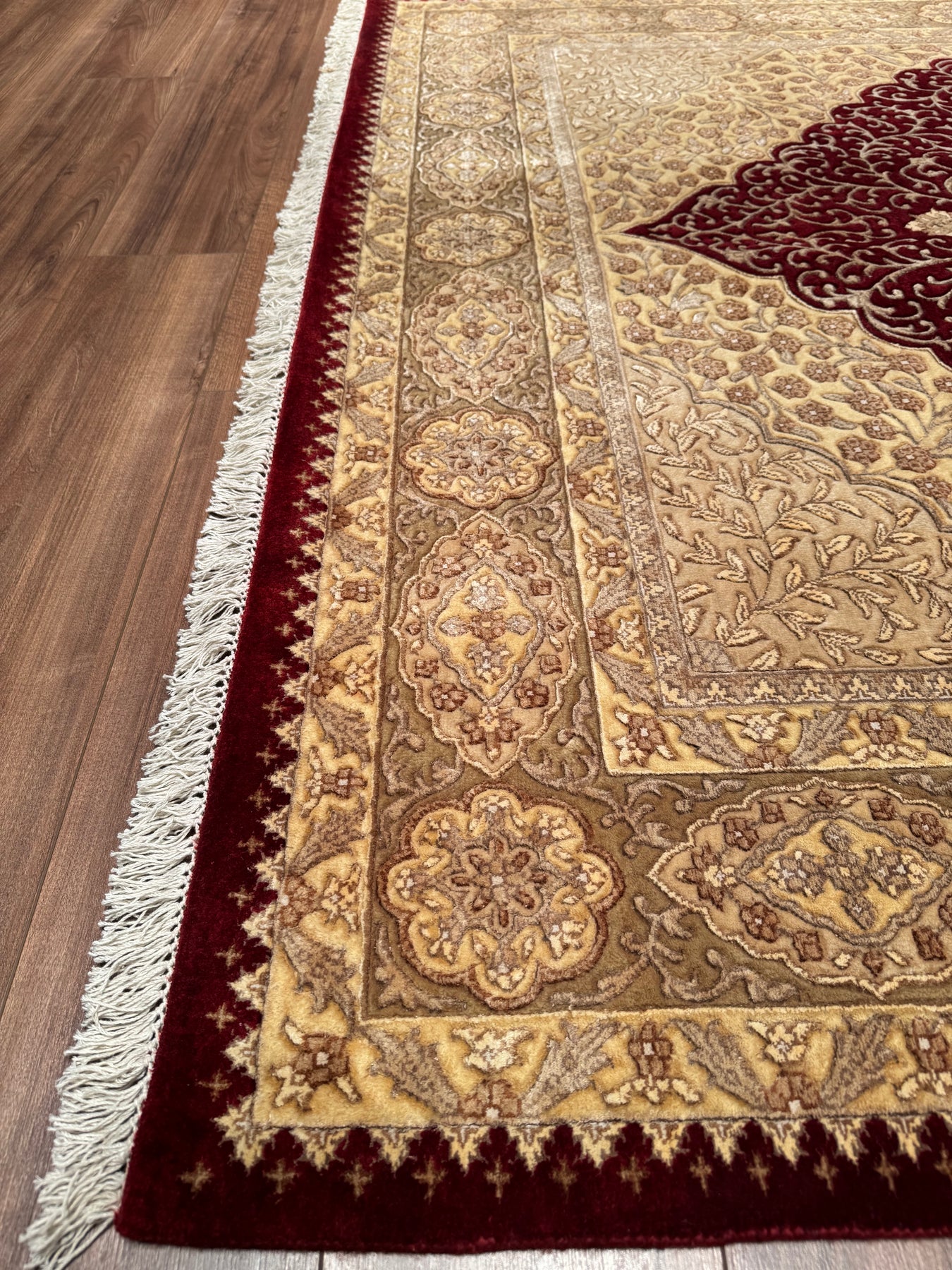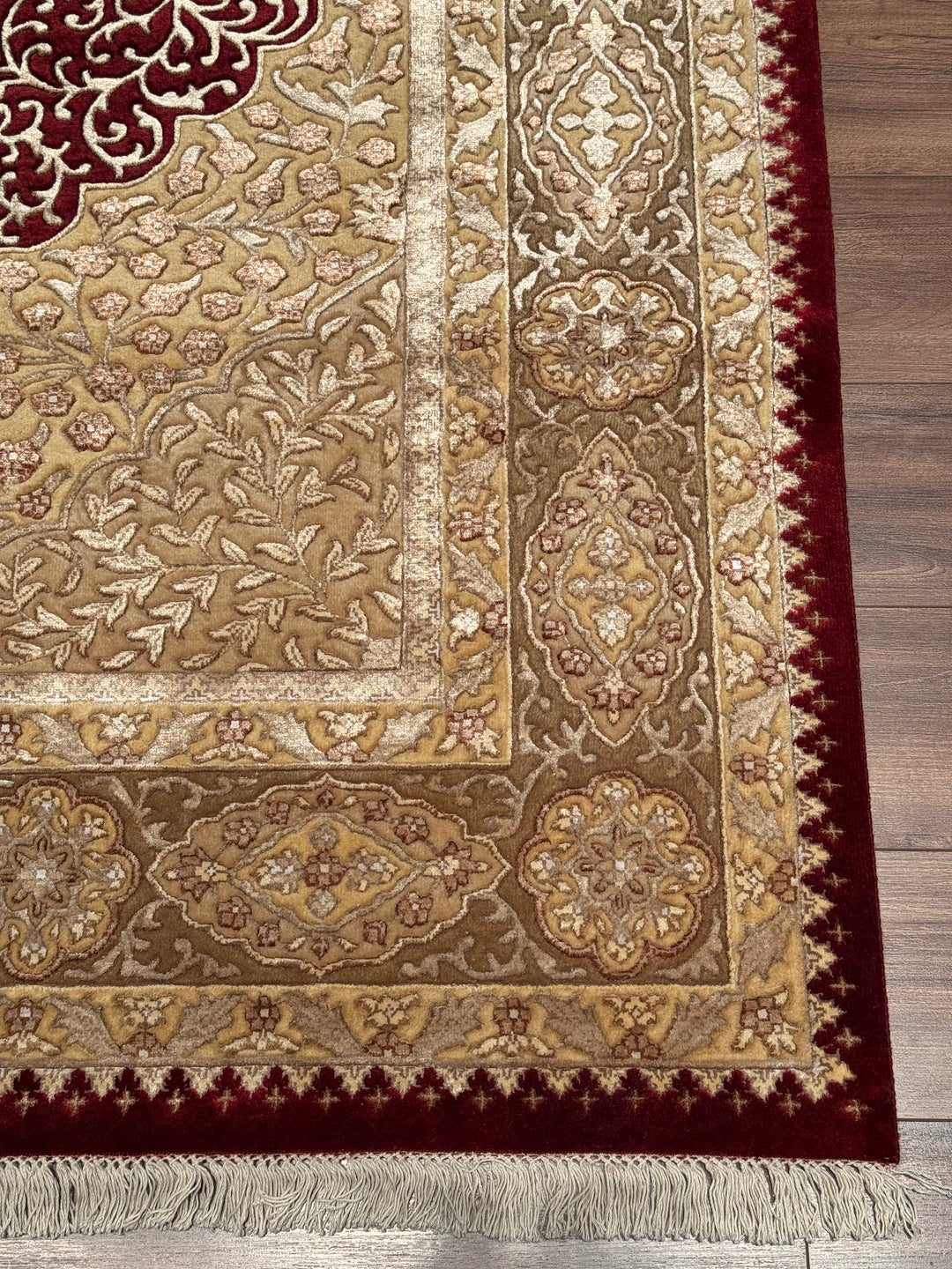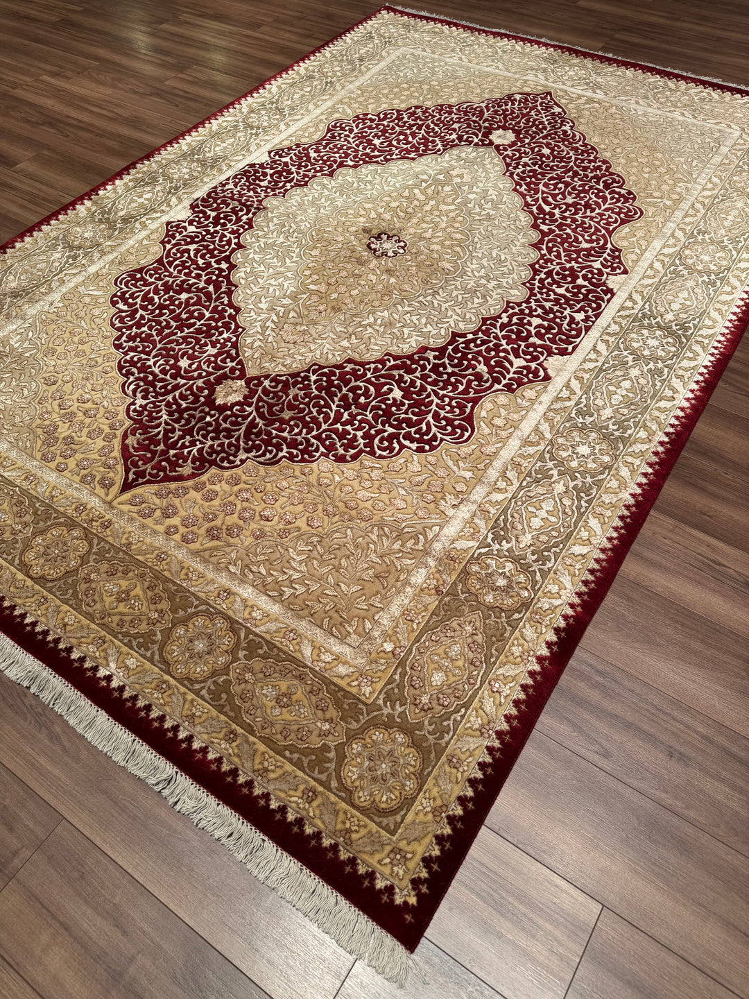 Hint Uşağı Orijinal El Dokuması Bej Kırmızı Yün Bambu Halı 206x304 6.26 Metrekare - 8x10 ft