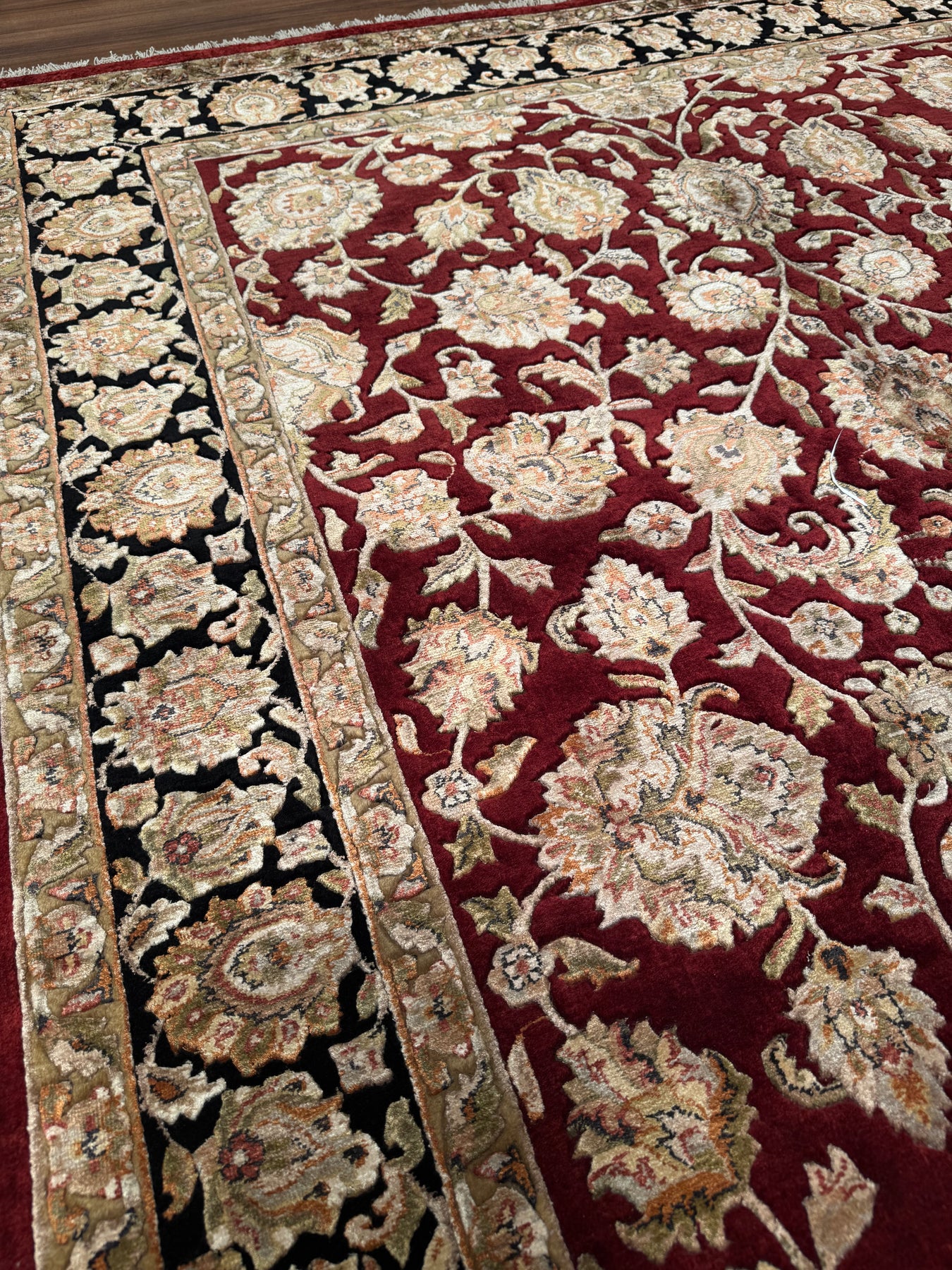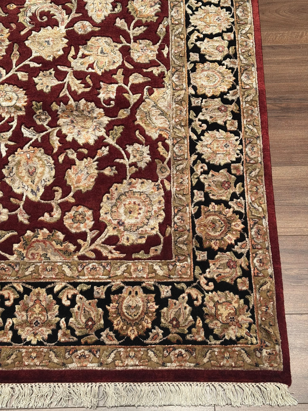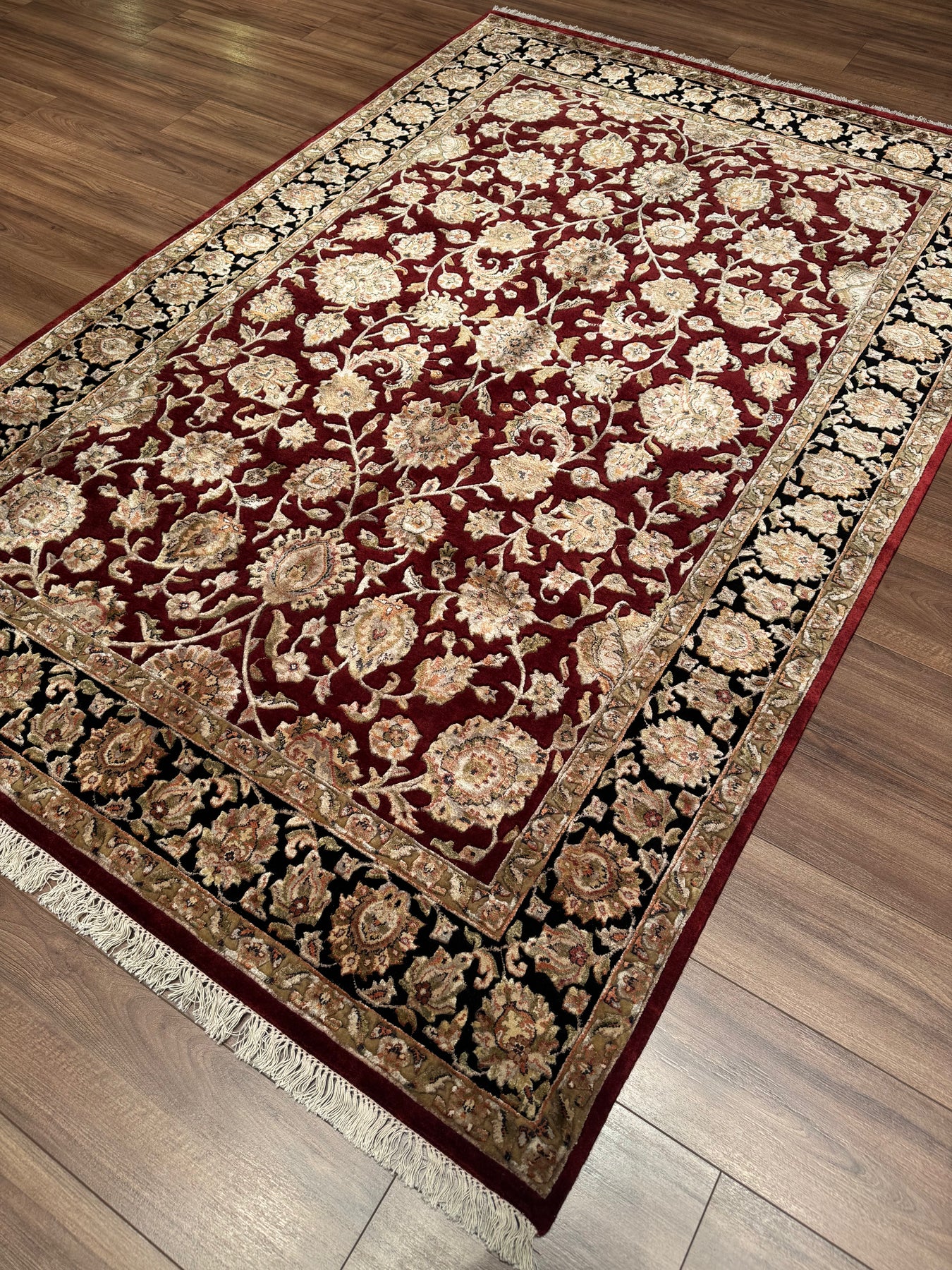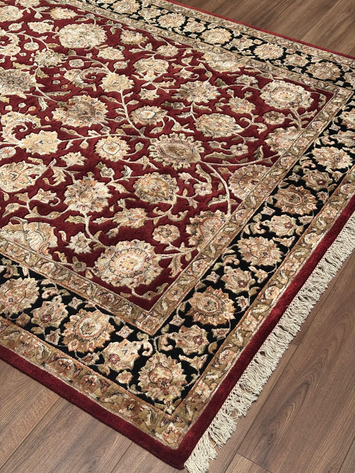 Hint Uşağı Orijinal El Dokuması Siyah Kırmızı Yün Bambu Halı 165x246 4.06 Metrekare - 5x8 ft