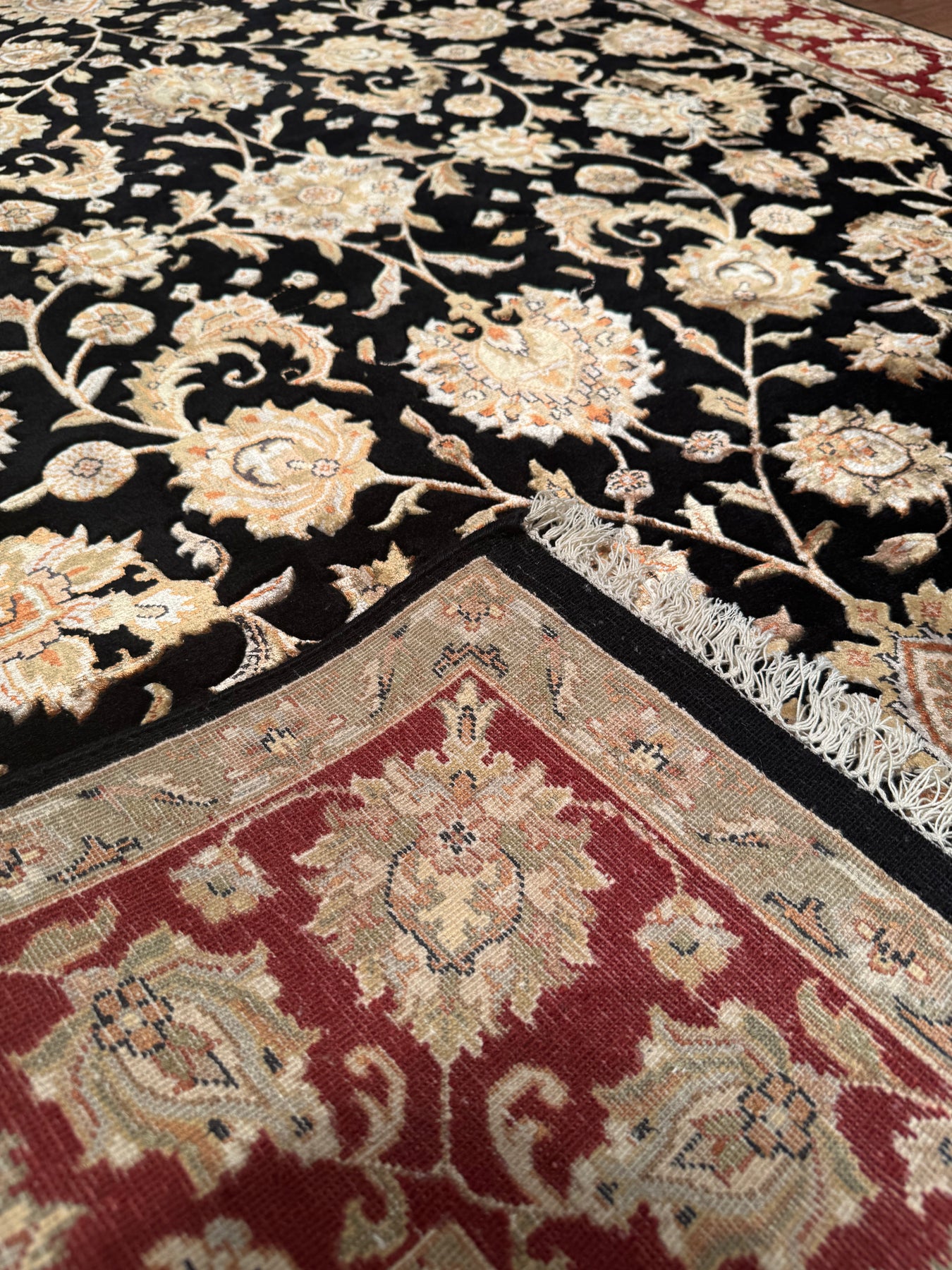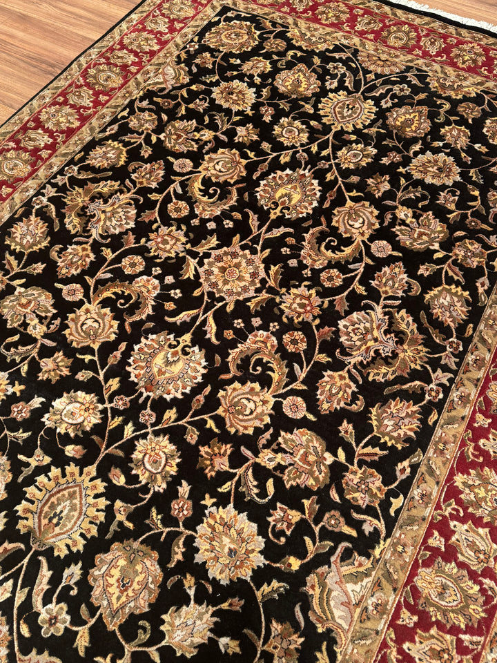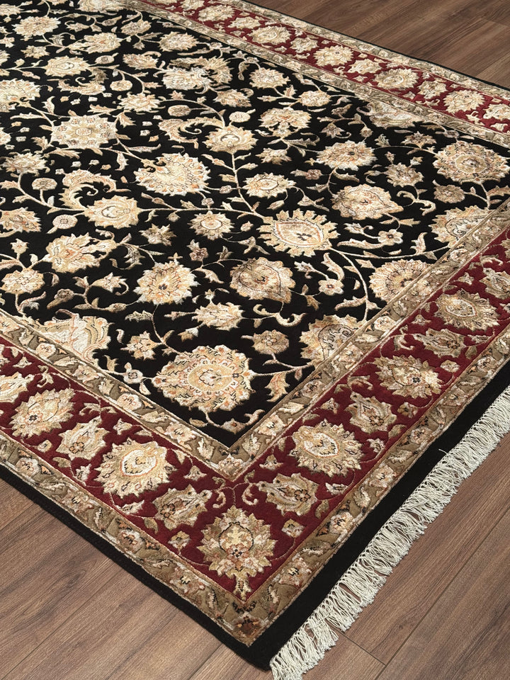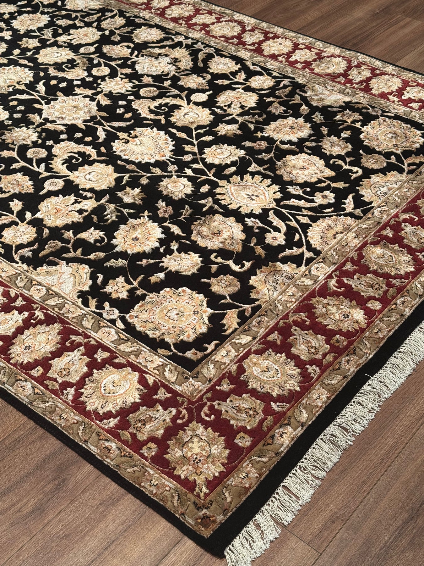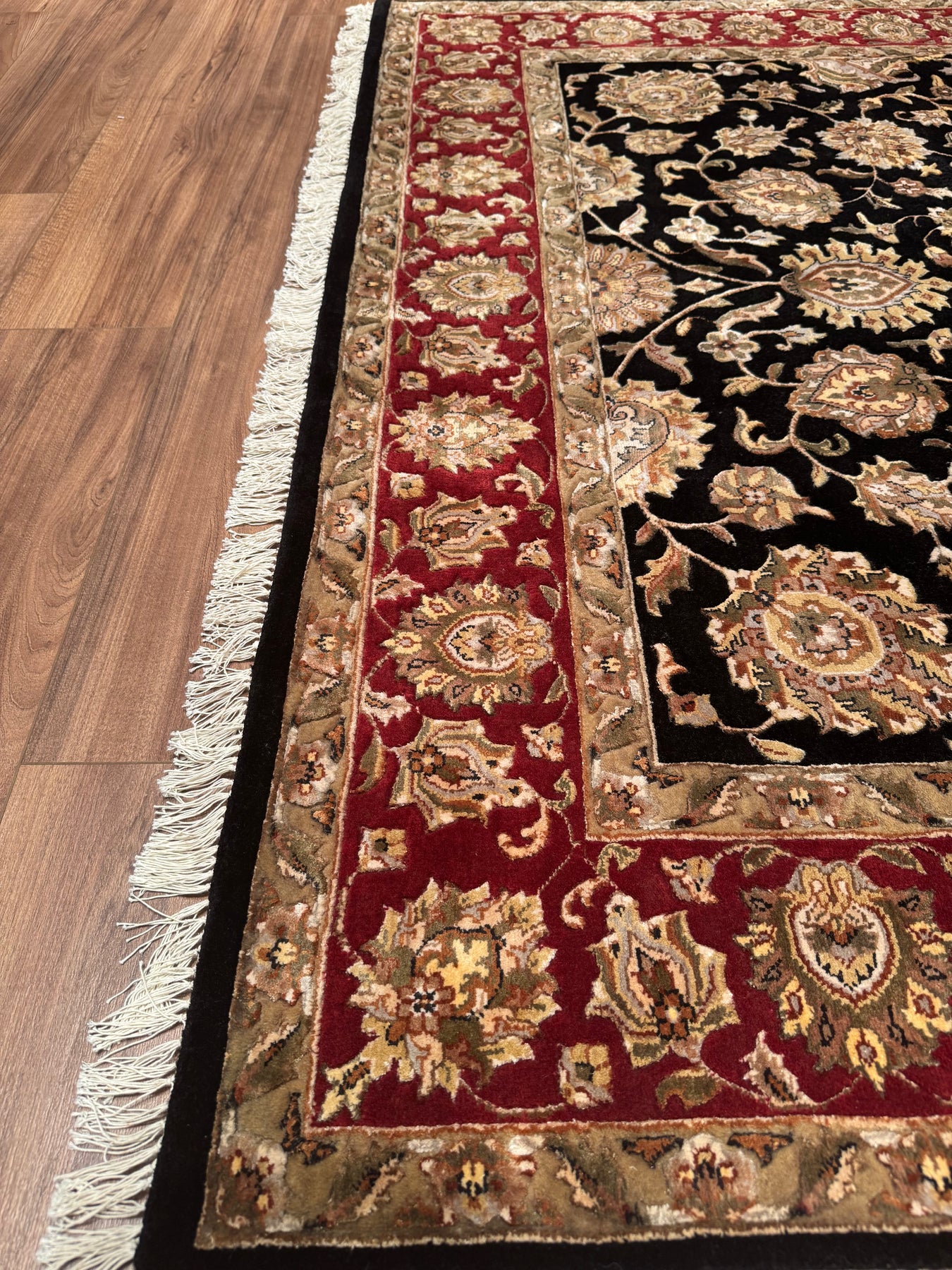 Hint Uşağı Orijinal El Dokuması Siyah Kırmızı Yün Bambu Halı 170x243 4.13 Metrekare - 5x8 ft