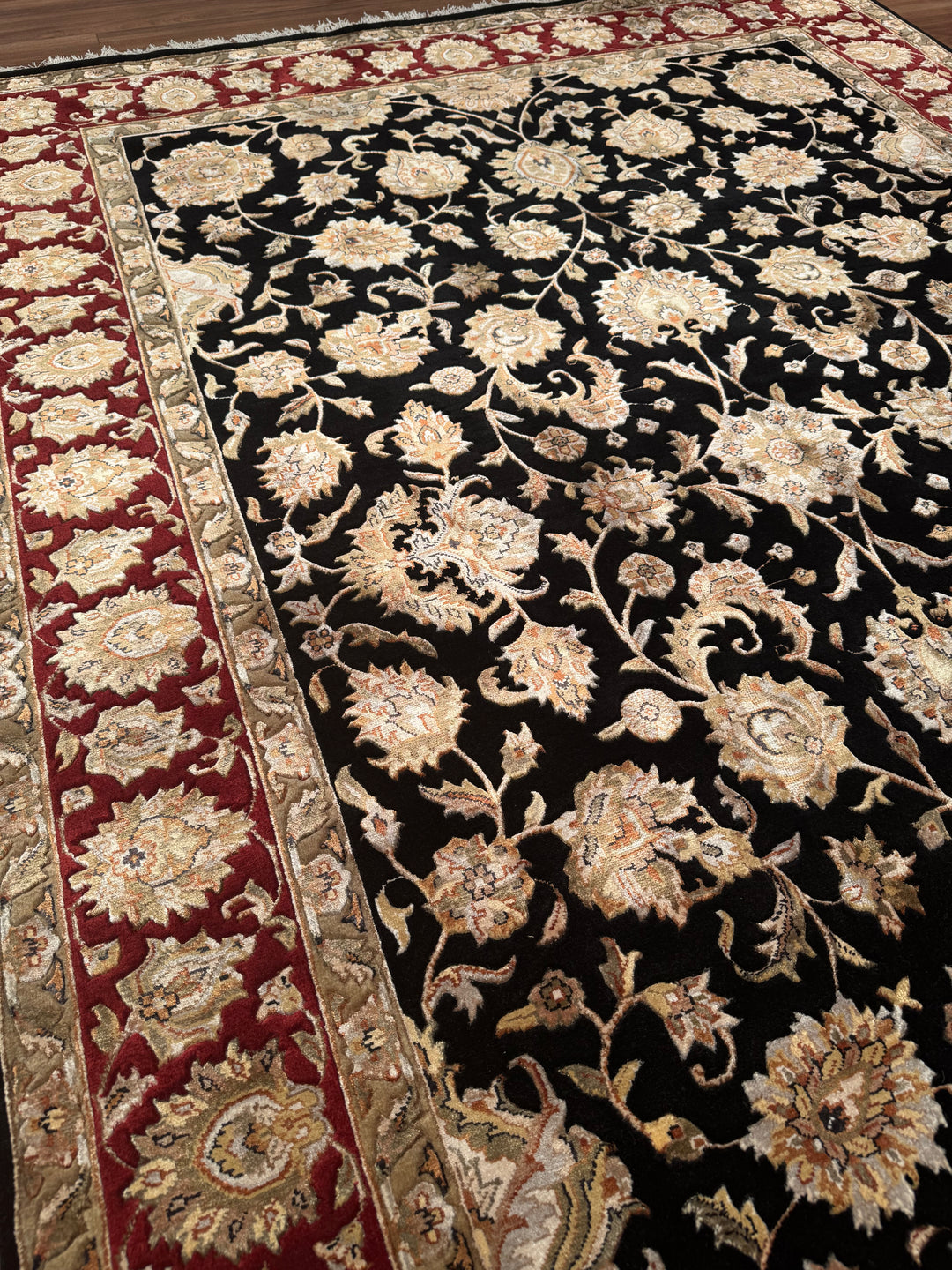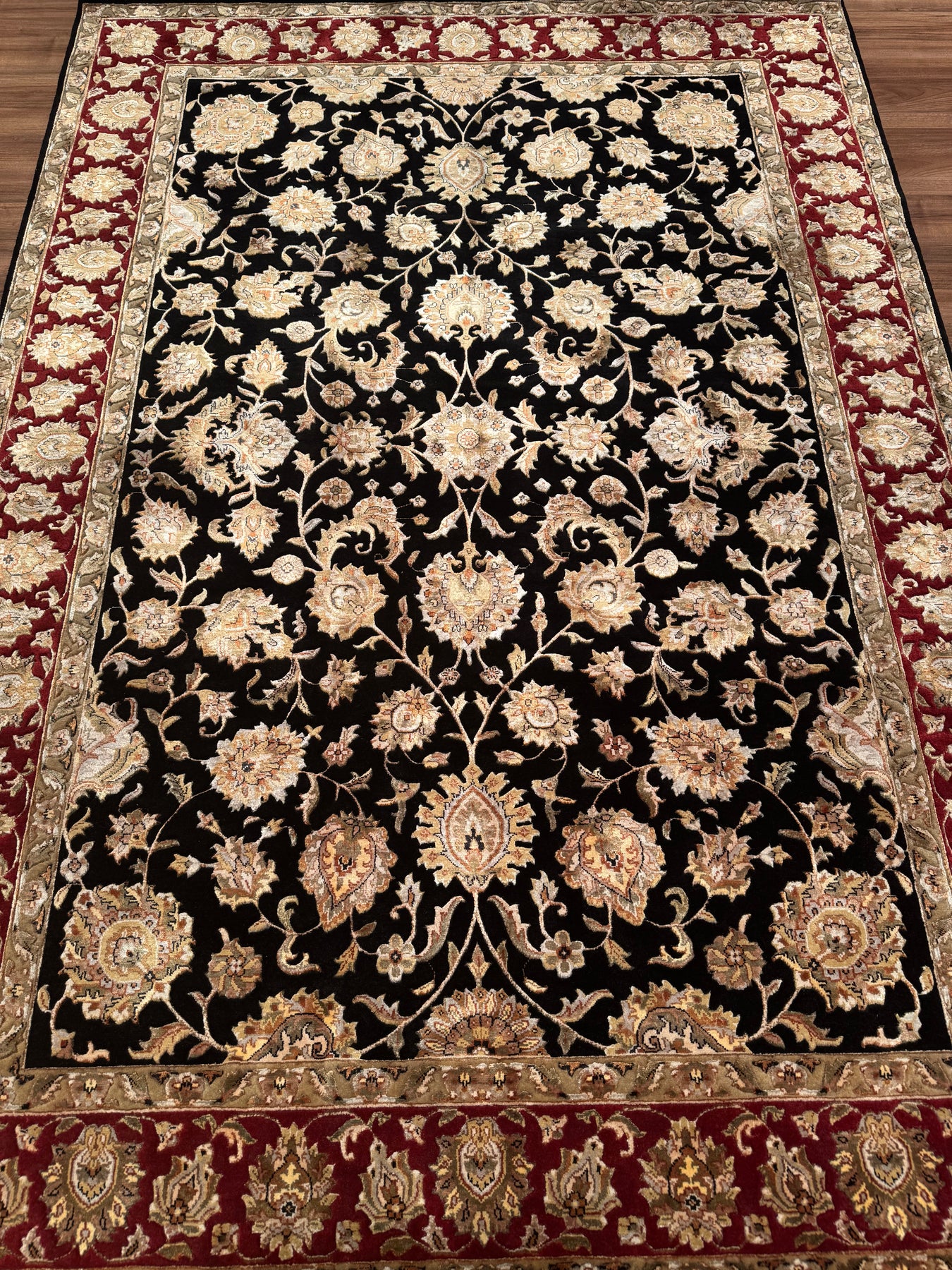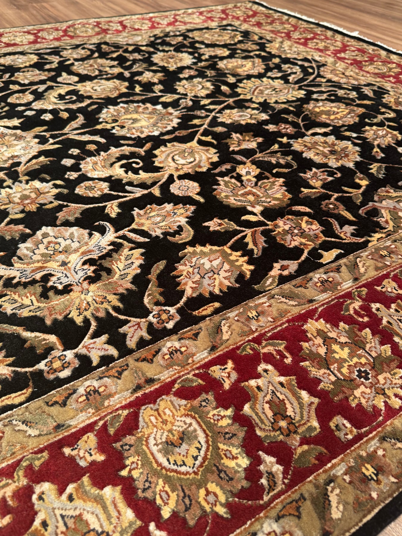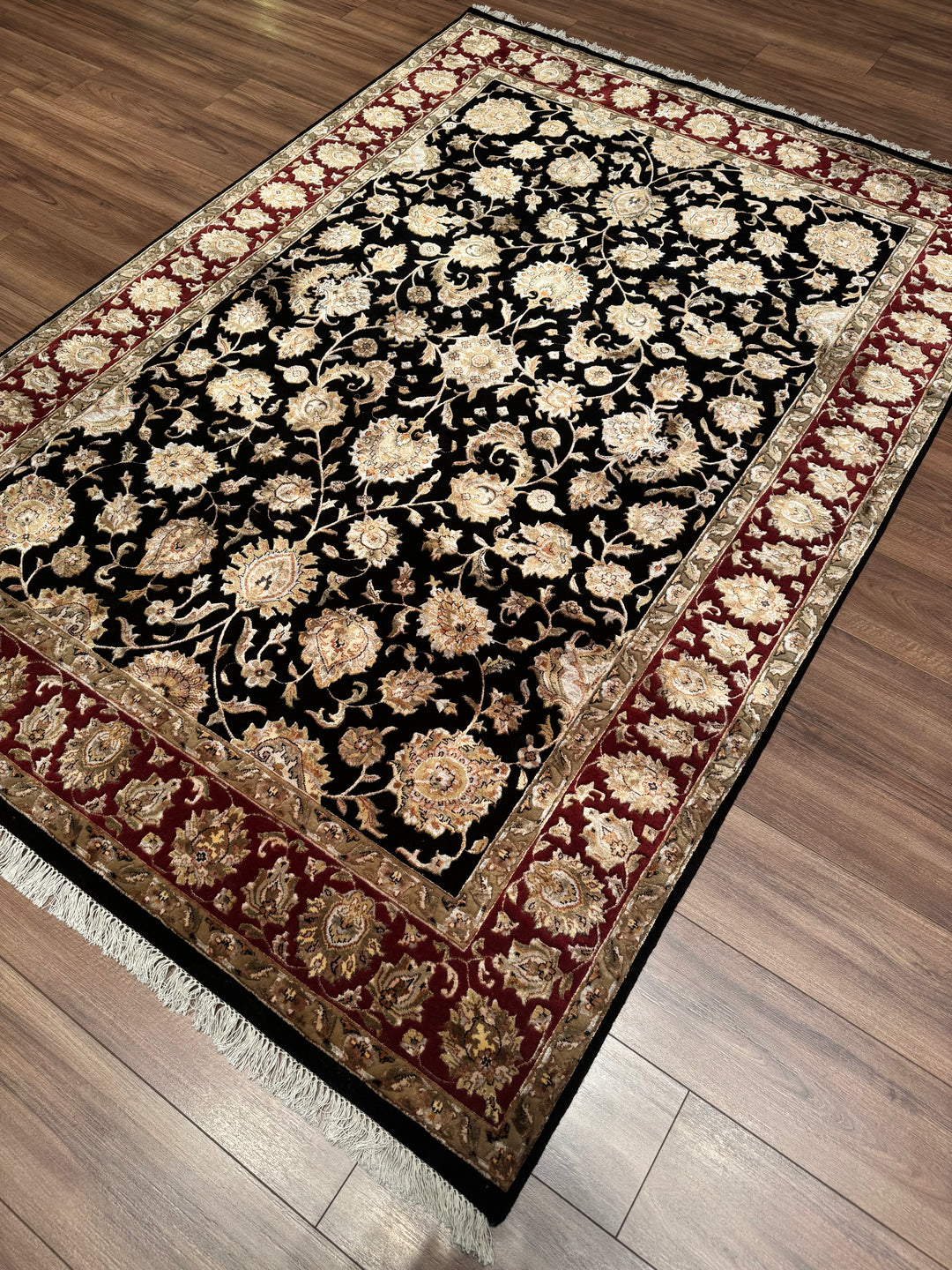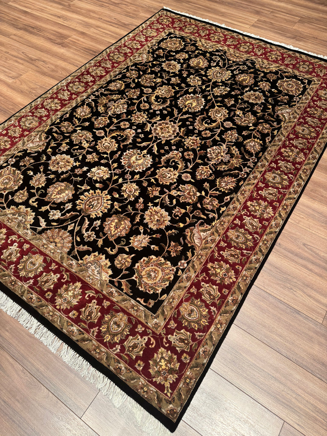 Hint Uşağı Orijinal El Dokuması Siyah Kırmızı Yün Bambu Halı 170x243 4.13 Metrekare - 5x8 ft