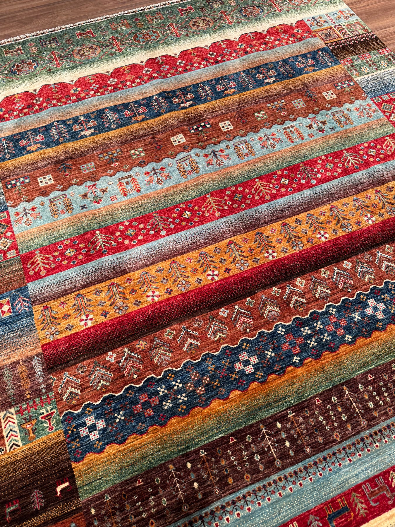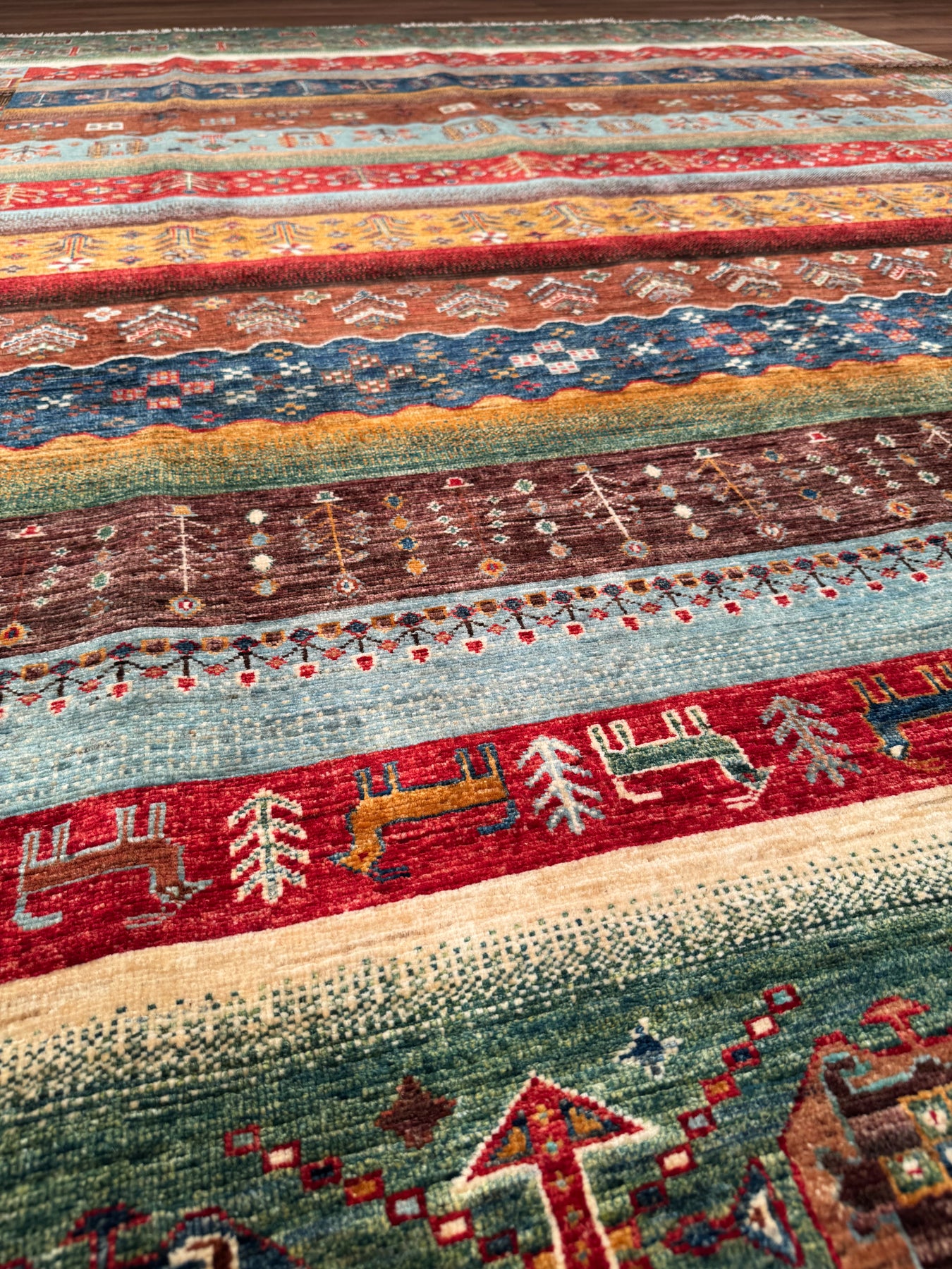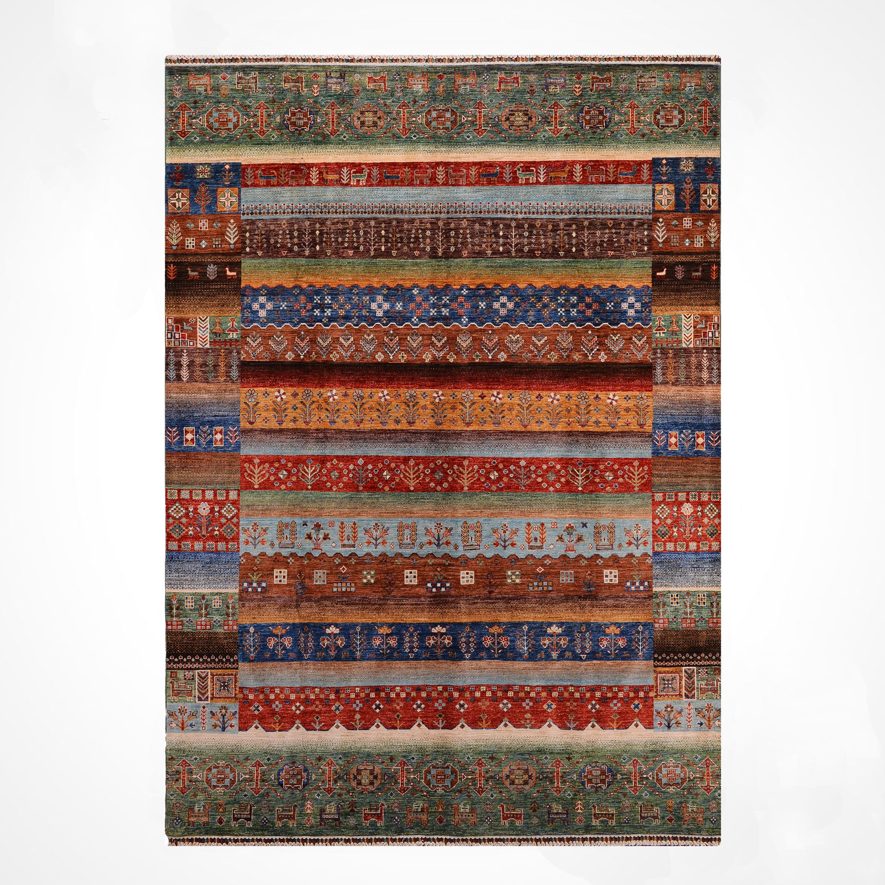 Khorjin Gabbe Desenli Orijinal El Dokuması Yeşil Kök Boya Yün Halı 248x305 7.56 Metrekare - 8x10 ft