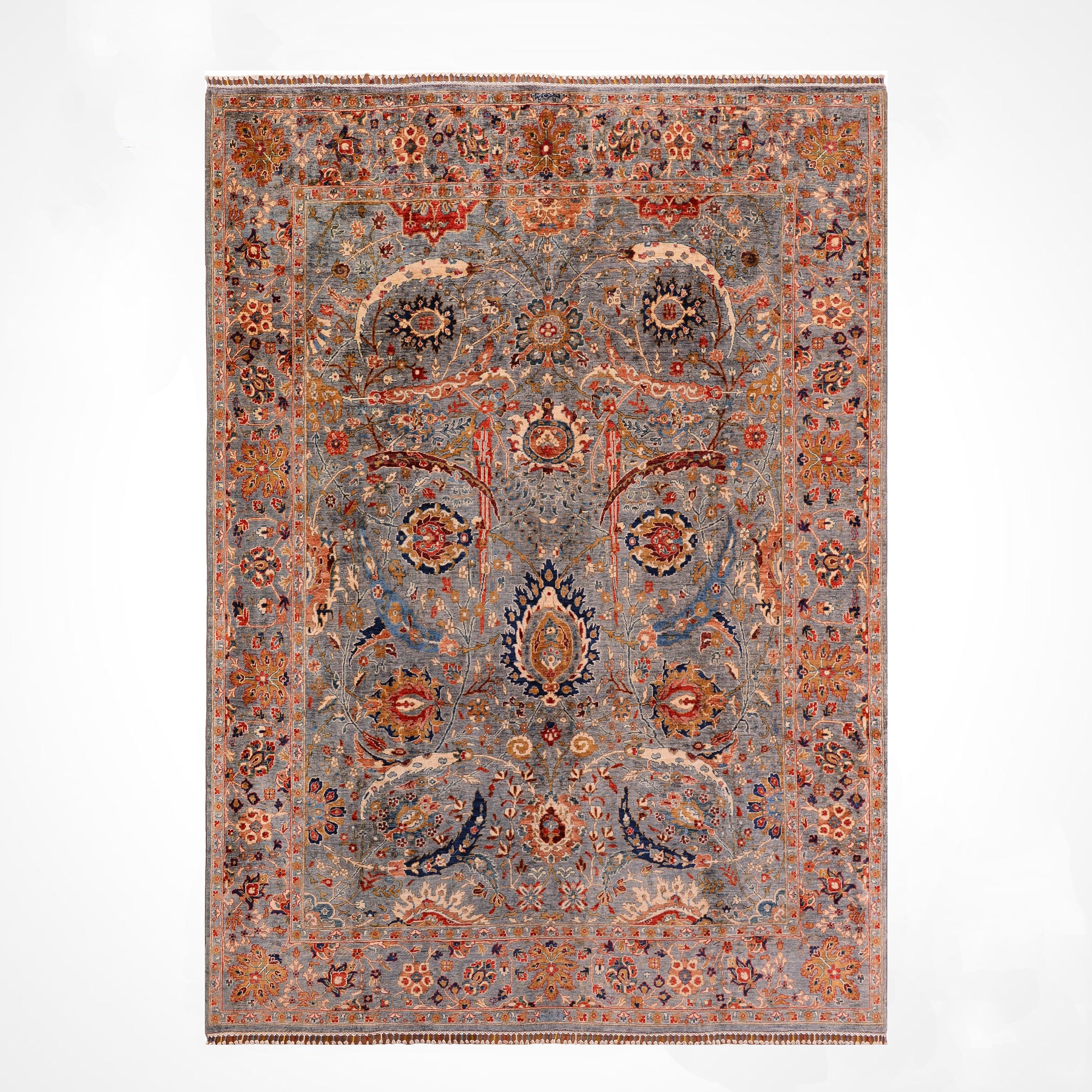 Memlük Orijinal El Dokuması Gri Kök Boya Yün Halı 258x287 7.40 Metrekare - 8x10 ft