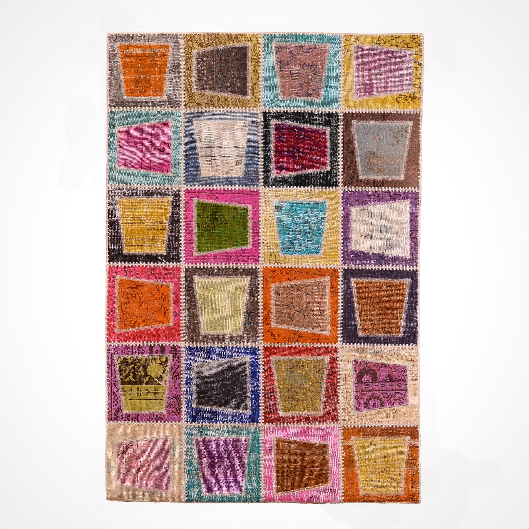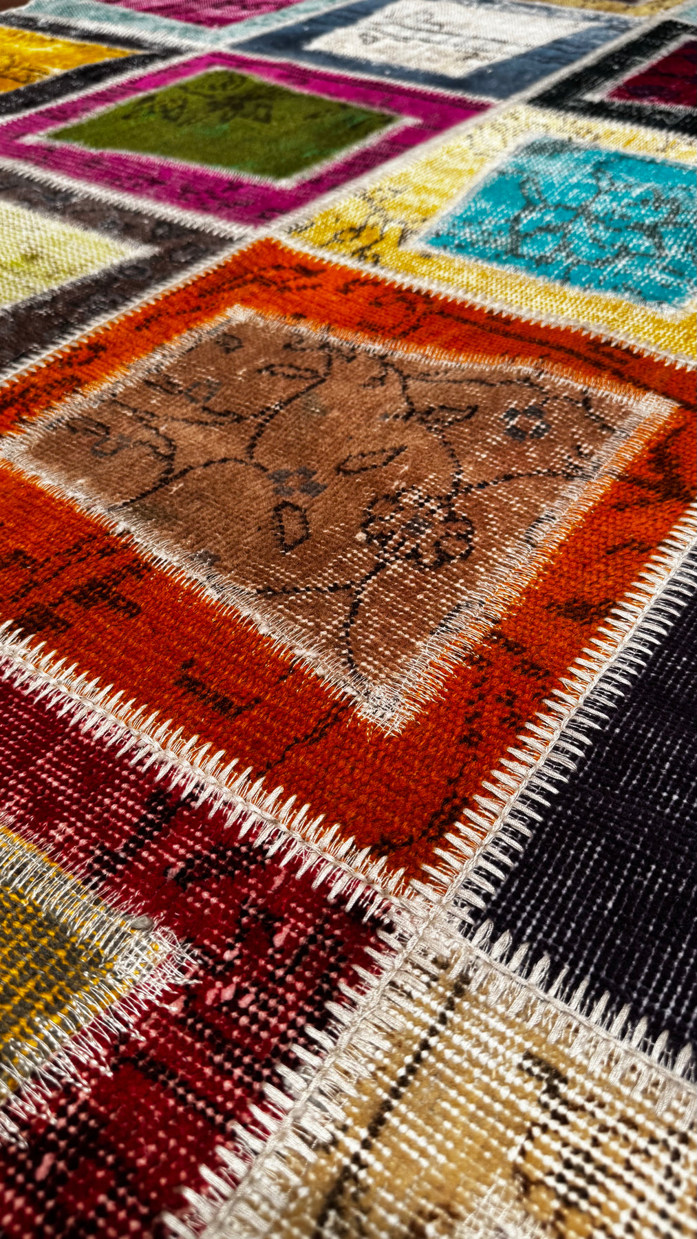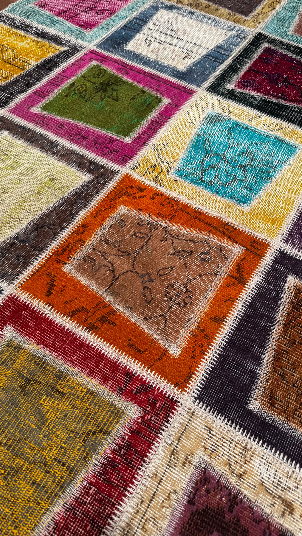 Orijinal patchwork halılar, eski el dokuması halılardan kesilerek yapılır. Bu halılar genellikle Anadolu, İran veya Afgan kökenli olup, doğal yün ve pamuk gibi malzemelerle üretilmiş parçalardan oluşur. Kullanılamayacak durumdaki halıların sağlam bölümleri seçilip yeniden birleştirilir, bu sayede hem nostaljik hem çevre dostu bir ürün ortaya çıkar.
