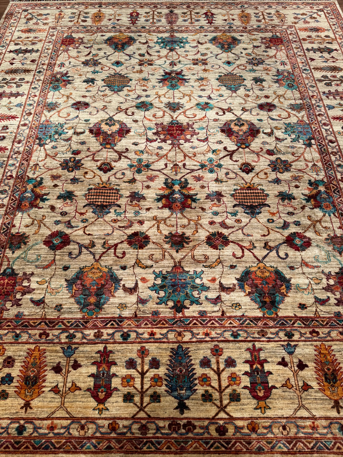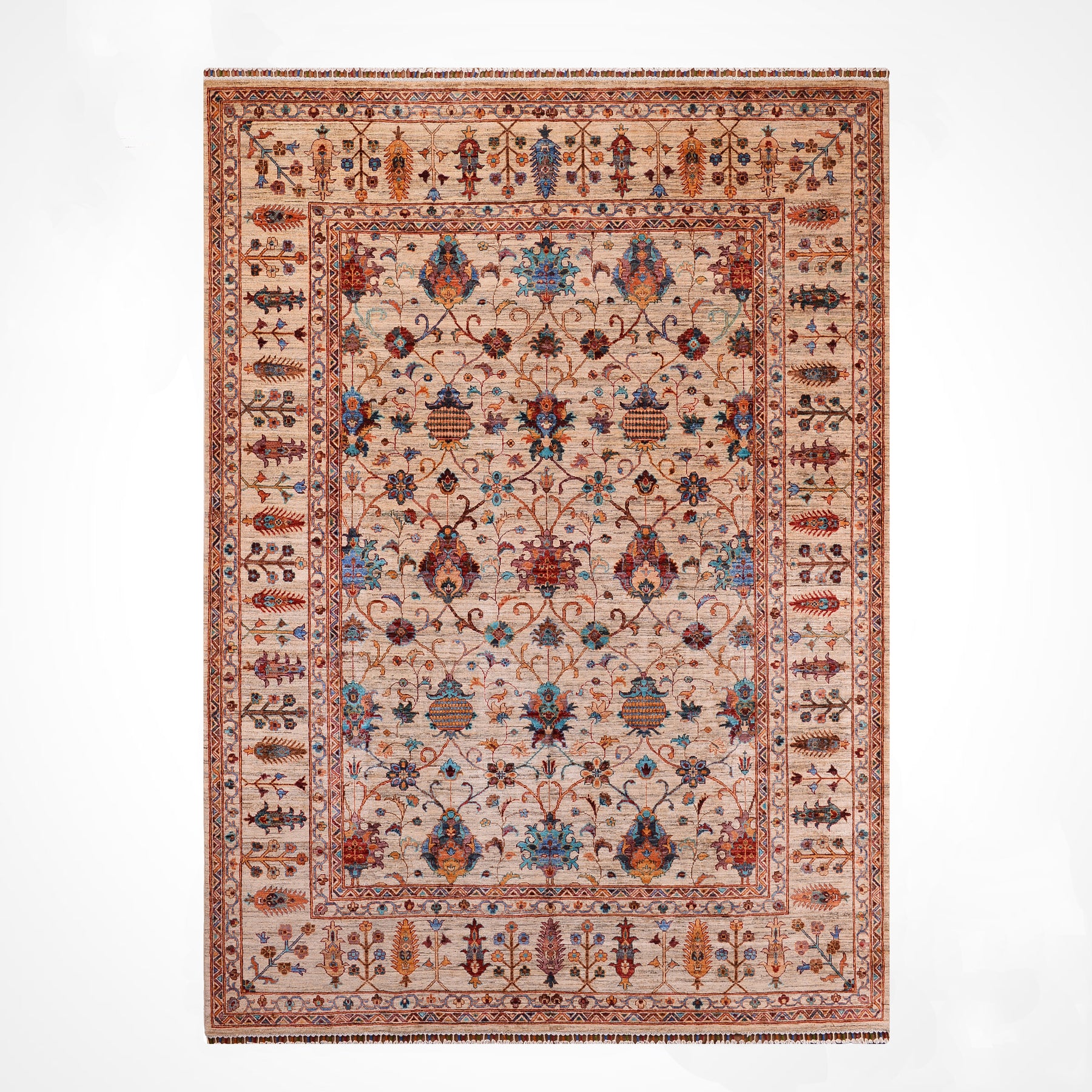 Sultani Binbirgece Orijinal El Dokuması Bej Kök Boya Yün Halı 248x287 7.12 Metrekare - 8x10 ft
