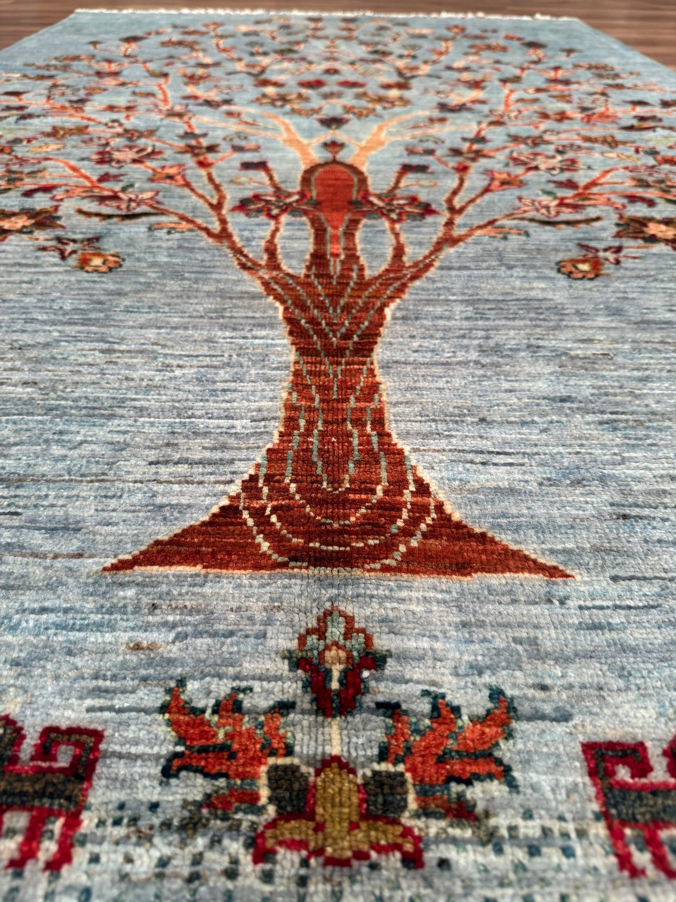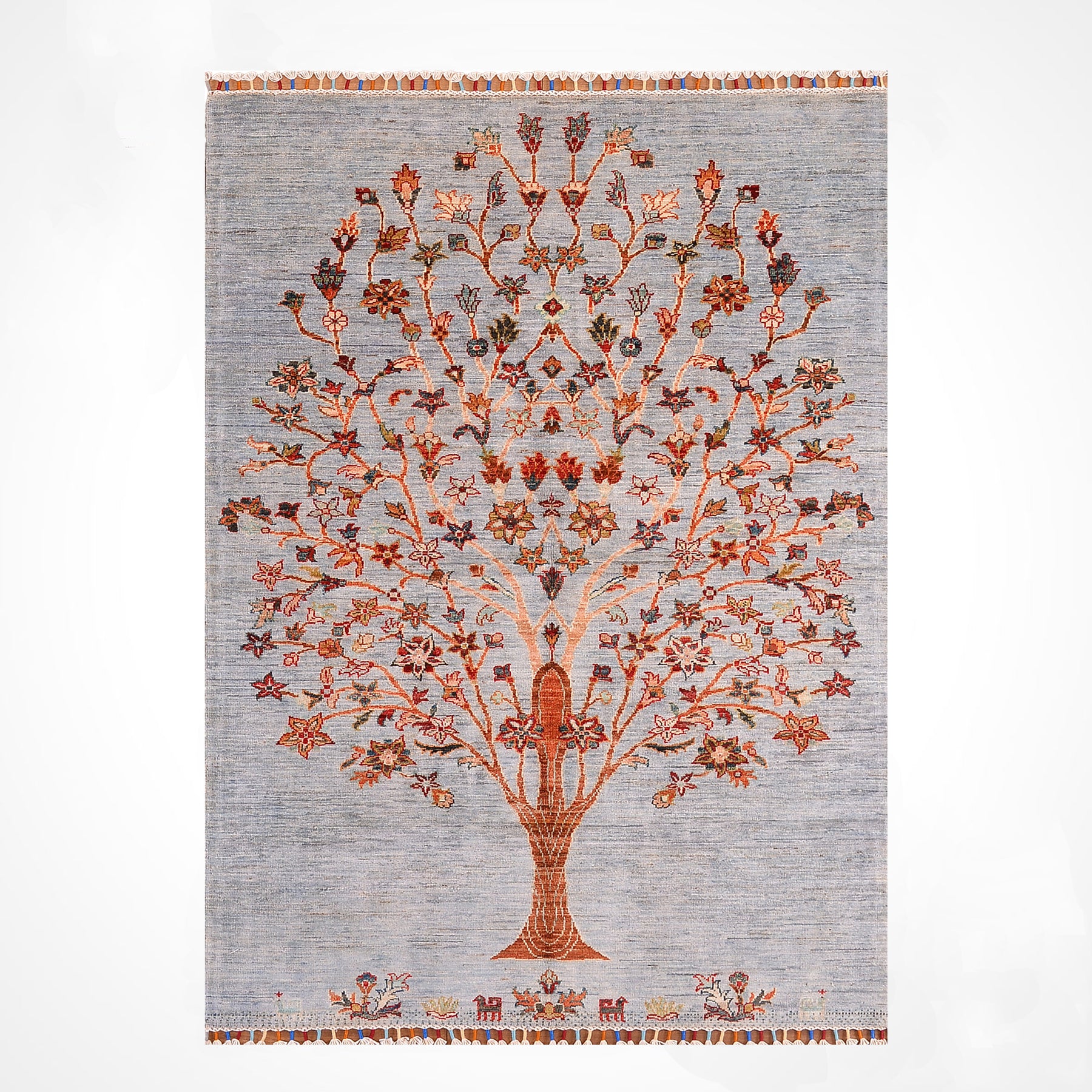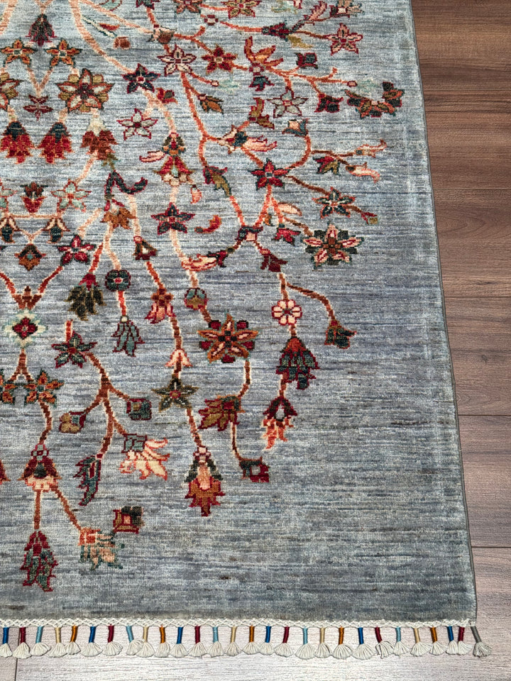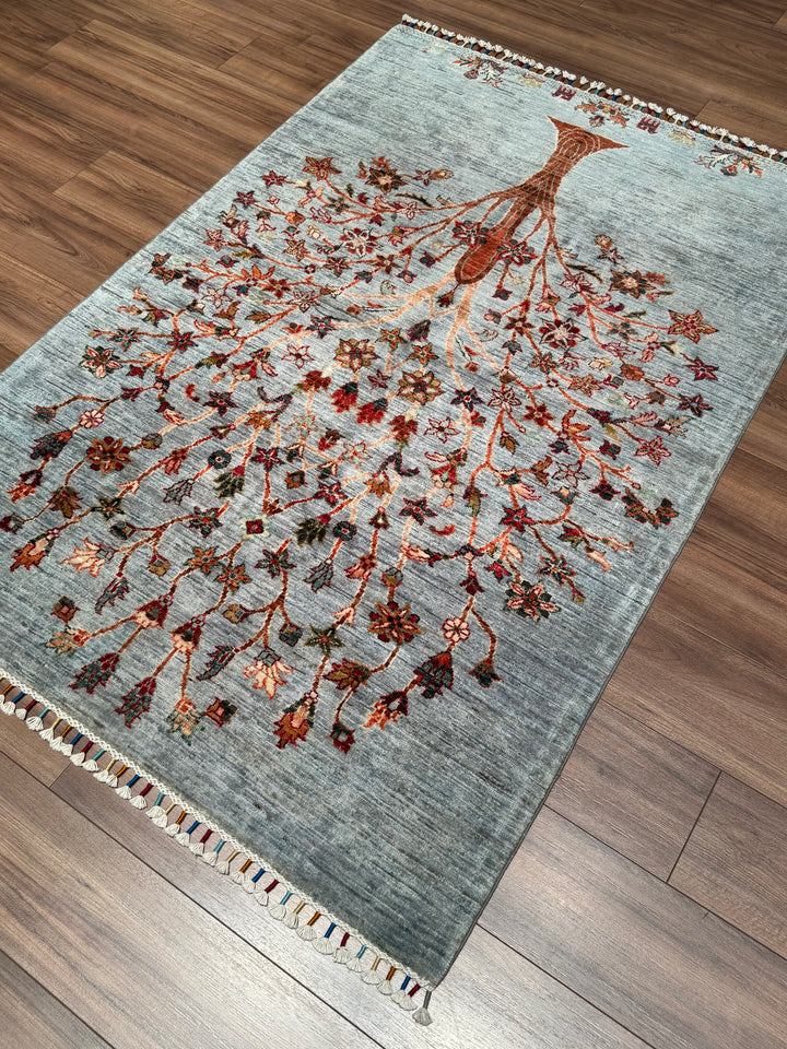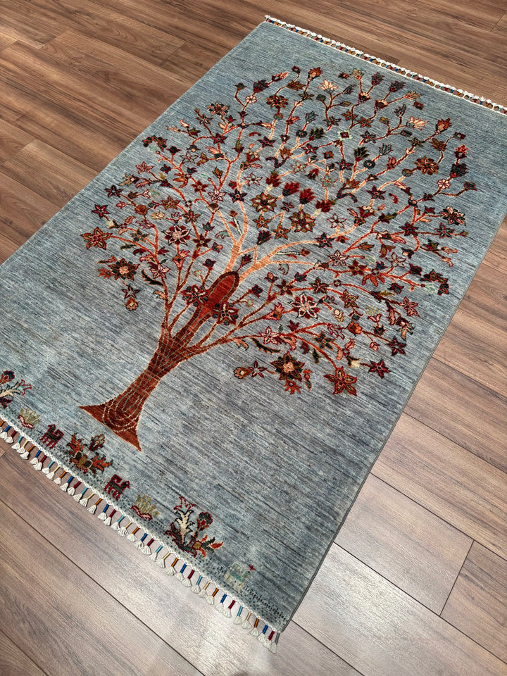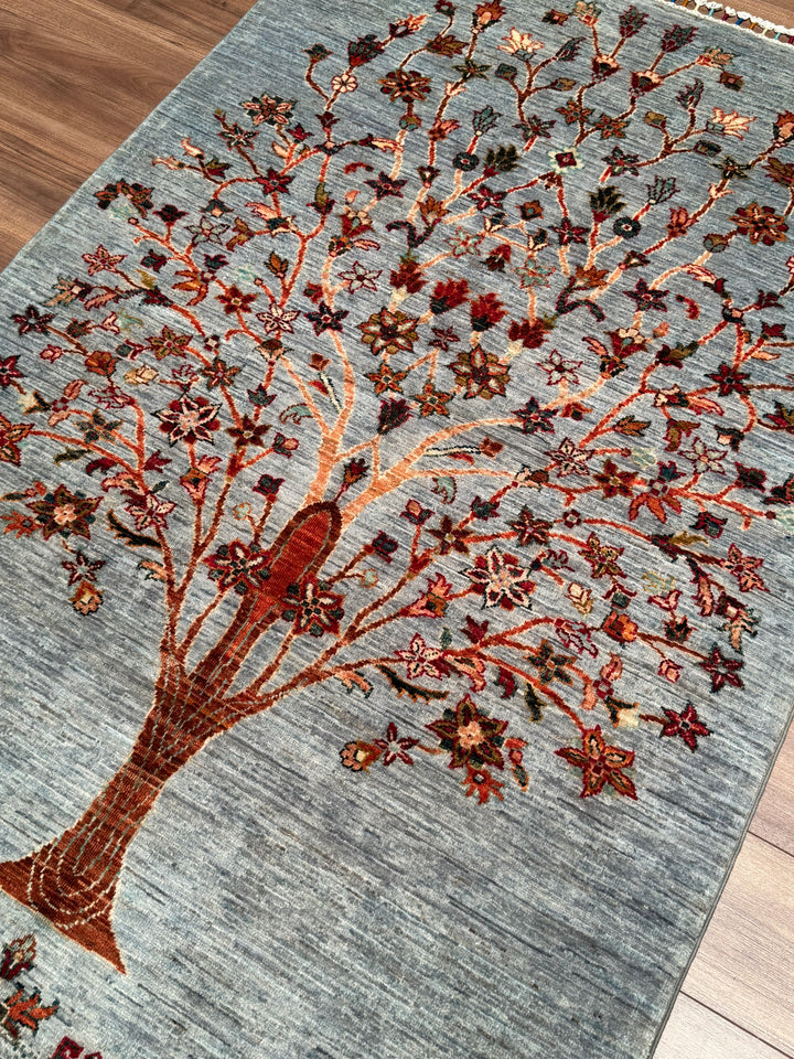 Sultani Hayat Ağacı Orijinal El Dokuması Gri Kök Boya Yün Halı 126x186 2.34 Metrekare - 4x6 ft