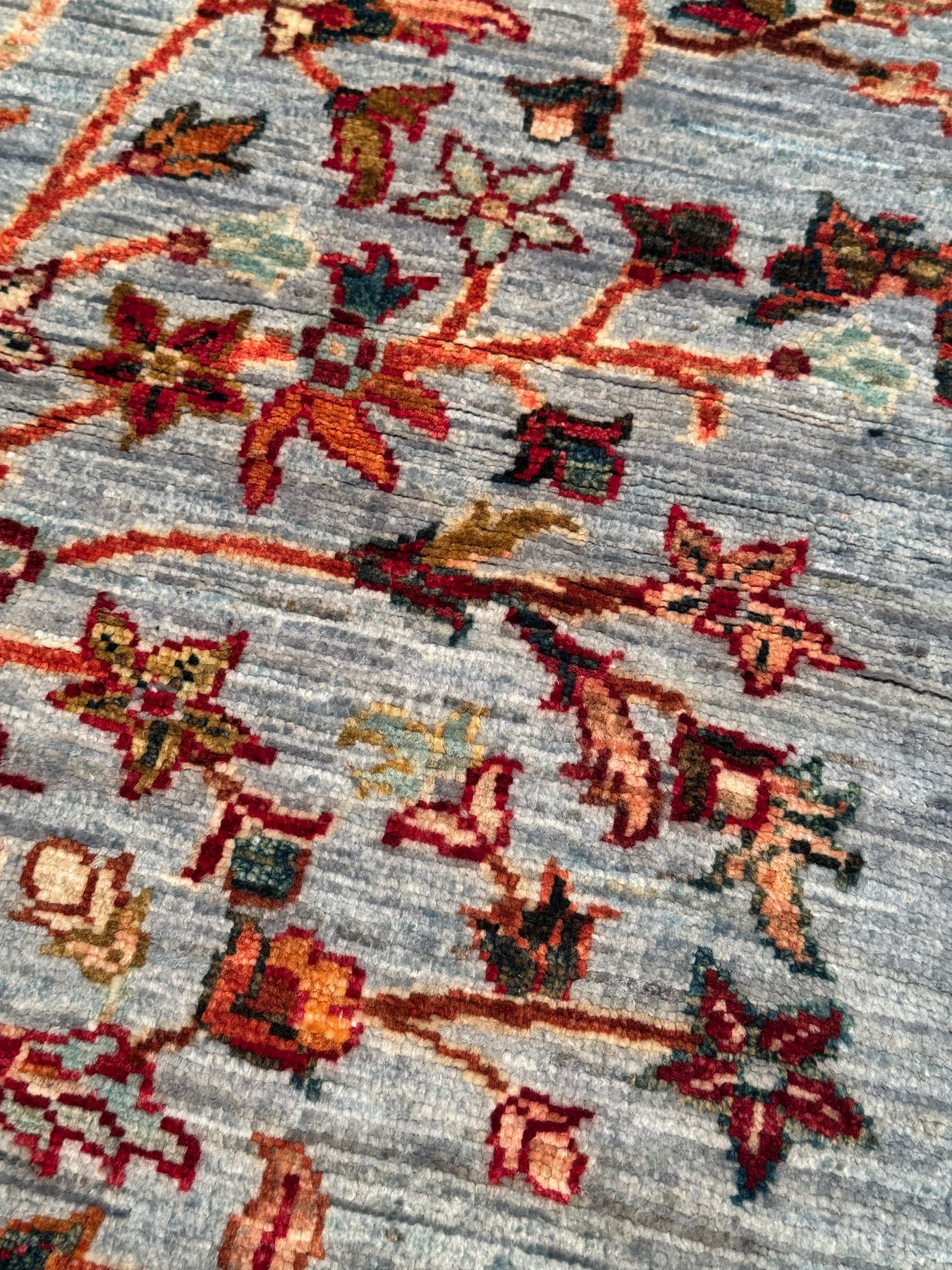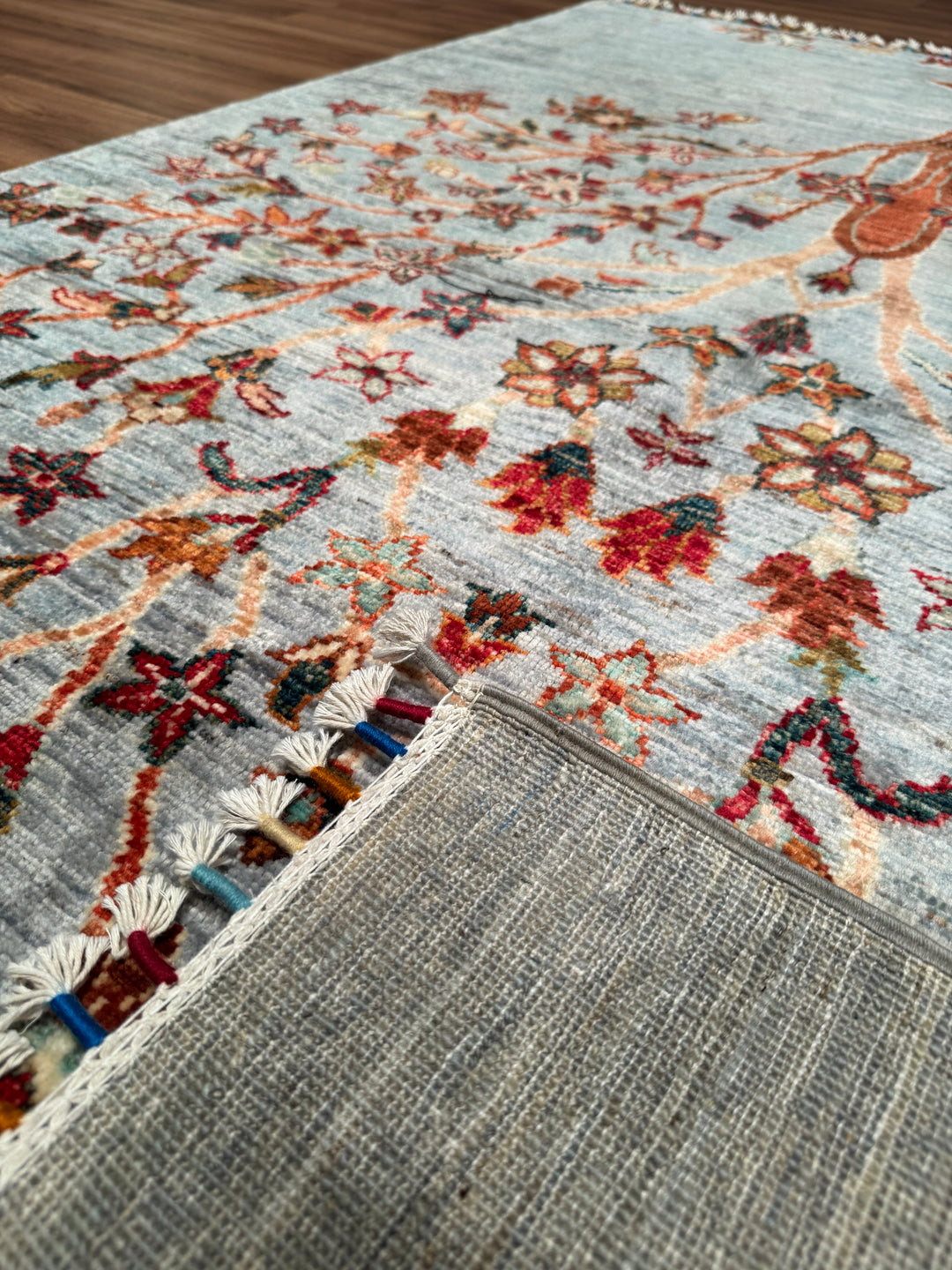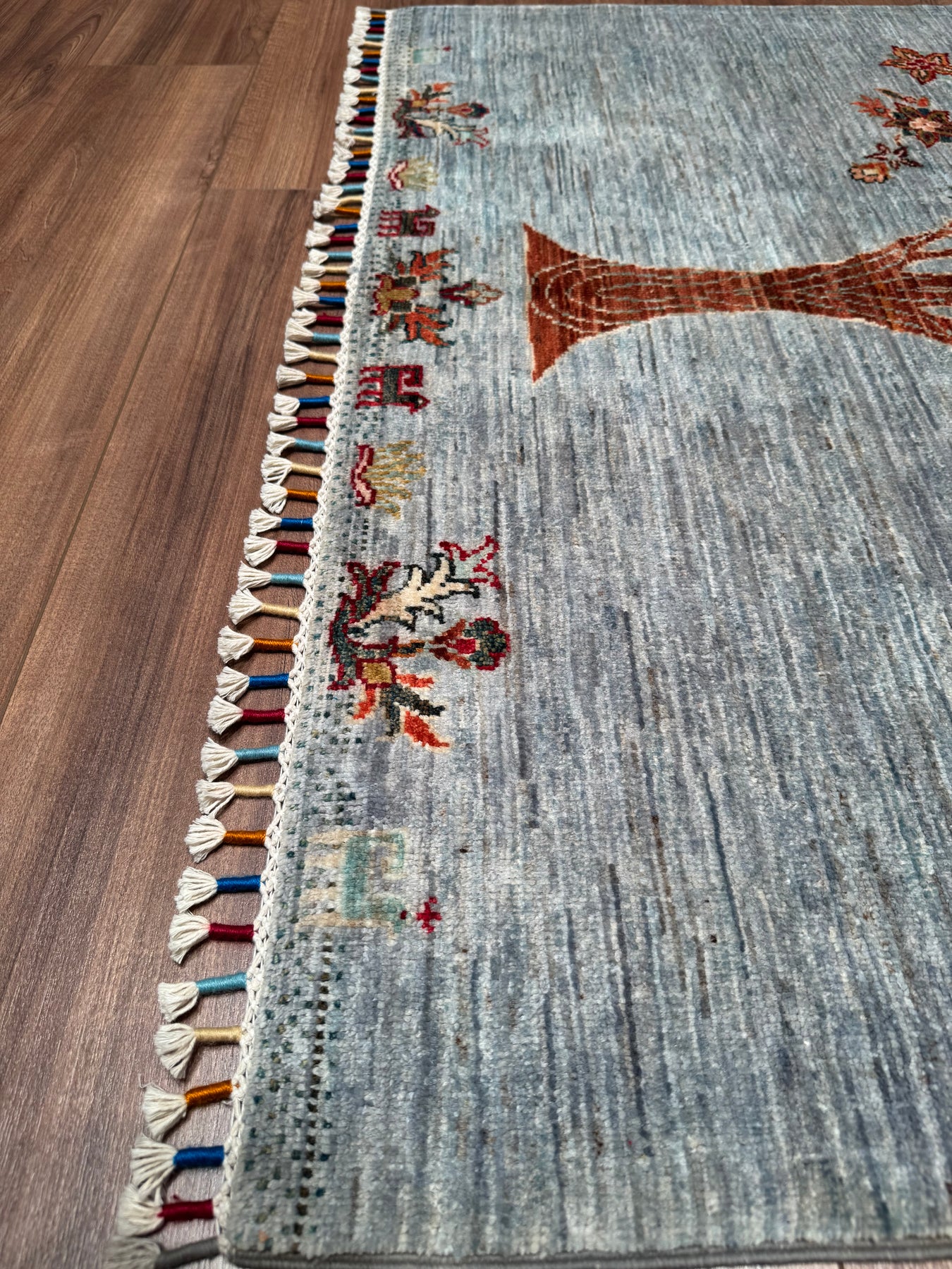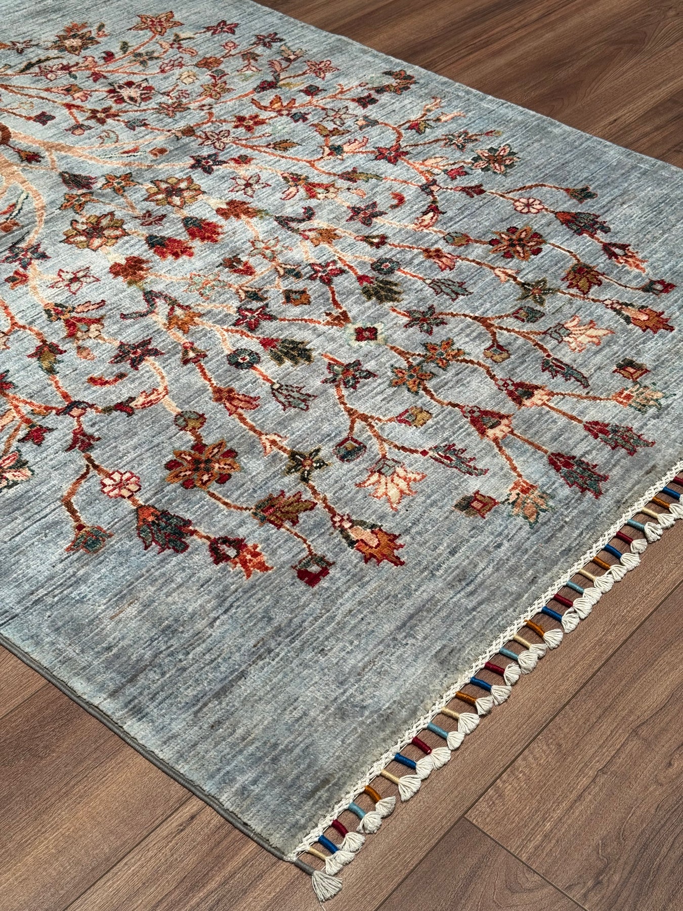 Sultani Hayat Ağacı Orijinal El Dokuması Gri Kök Boya Yün Halı 126x186 2.34 Metrekare - 4x6 ft